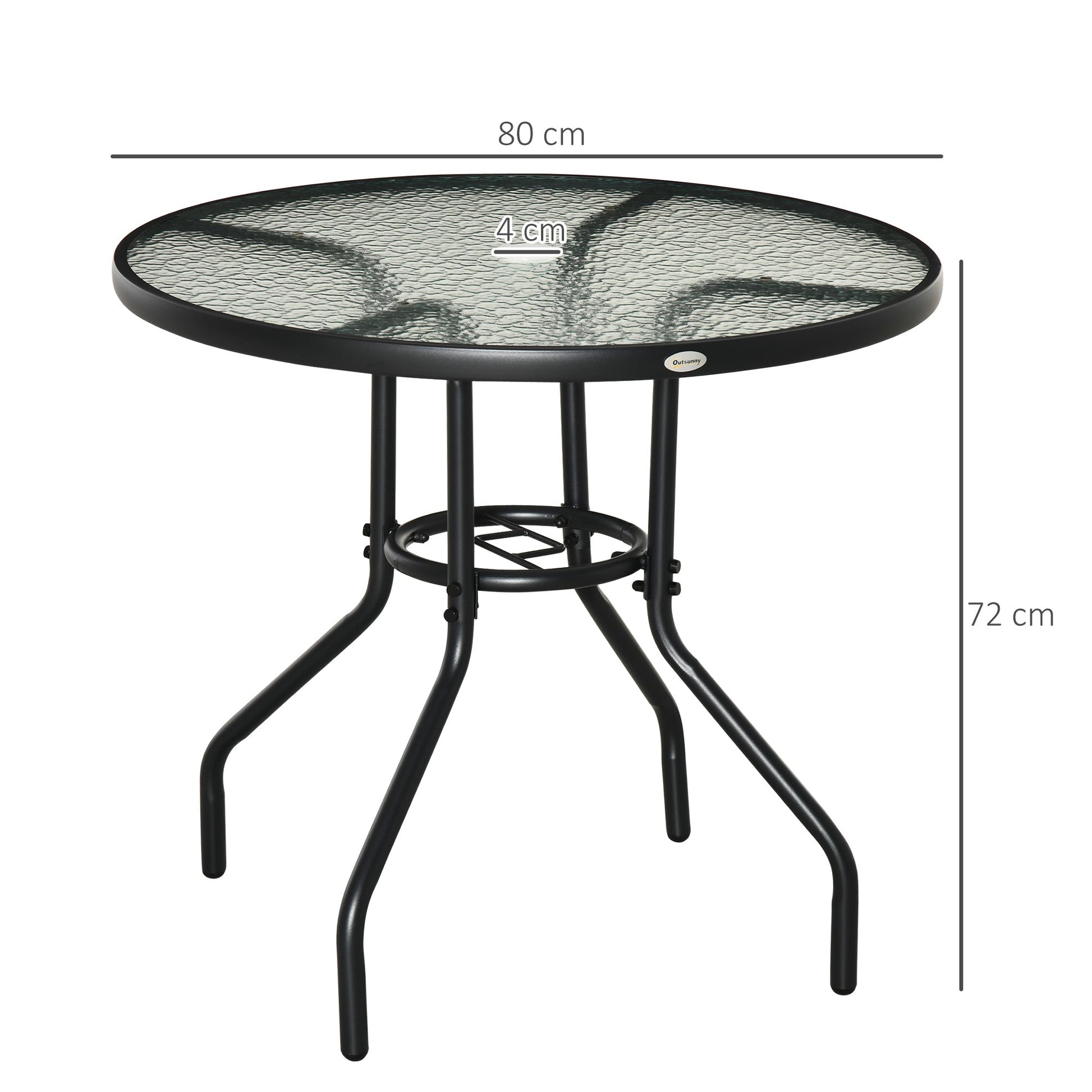 Outsunny Outdoor φ80cm Round Dining Table Tempered Glass Top Steel Frame Bistro Coffee End Side Table Garden w/ Parasol Hole
