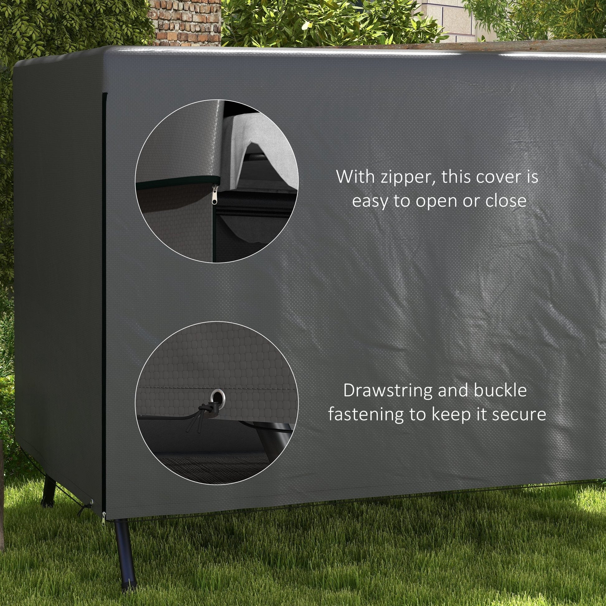 Protect your outdoor swing chairs in all weather conditions with this garden swing cover from Outsunny. Made from high quality, heavy duty plastic, it has tightly stitched seams to stop any moisture or water from seeping in. It has also been treated with a top coat to stop UV rays fading the furniture in summer and it features a secure drawstring and eyelet fastening to keep the cover on in the wind. Easy to slip on off, it will keep your swing chairs in top condition for many years to come.