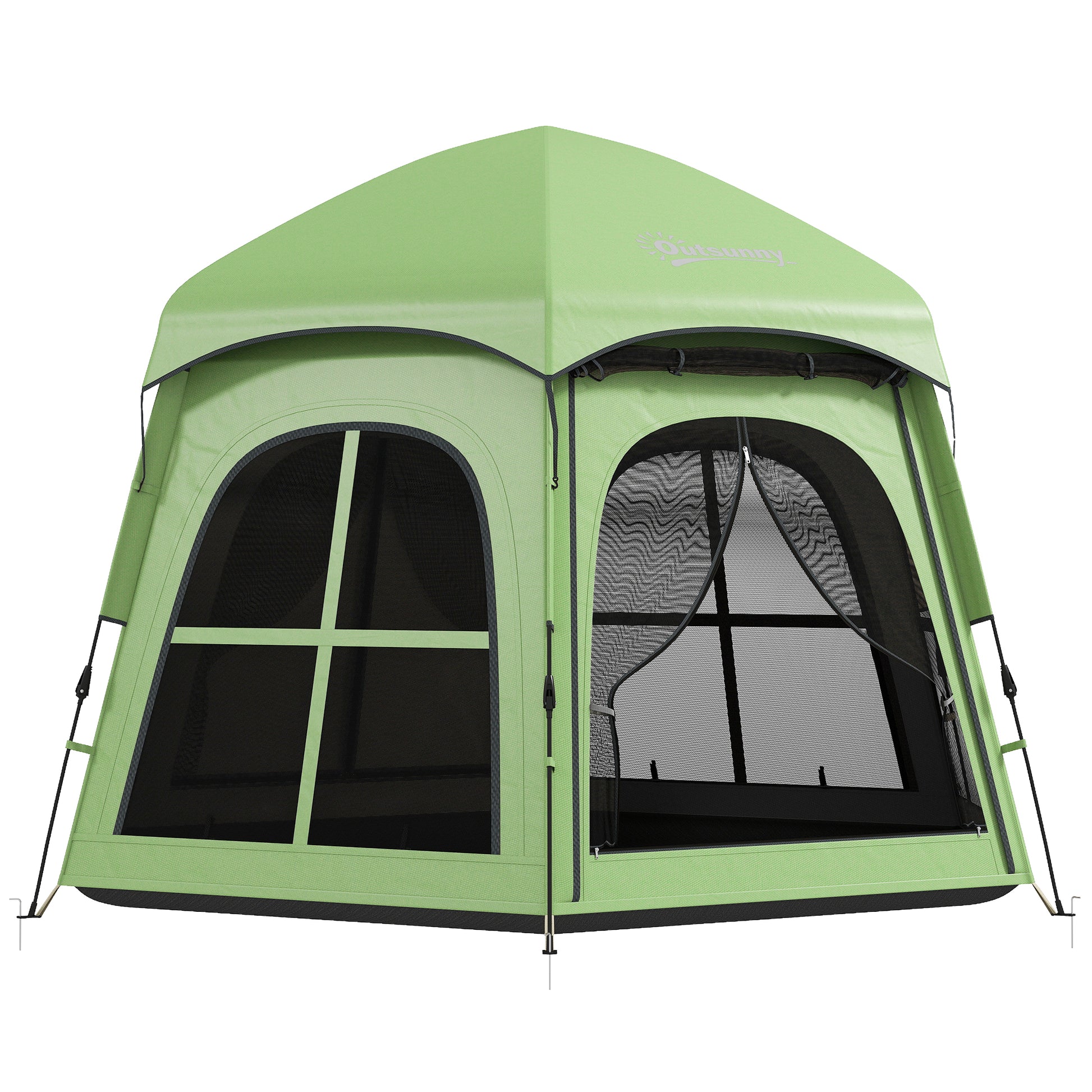 Outsunny Pop Up Tent 3000mm Waterproof Instant Camping Tent 3-4 Person with 2 Doors 4 Windows Green