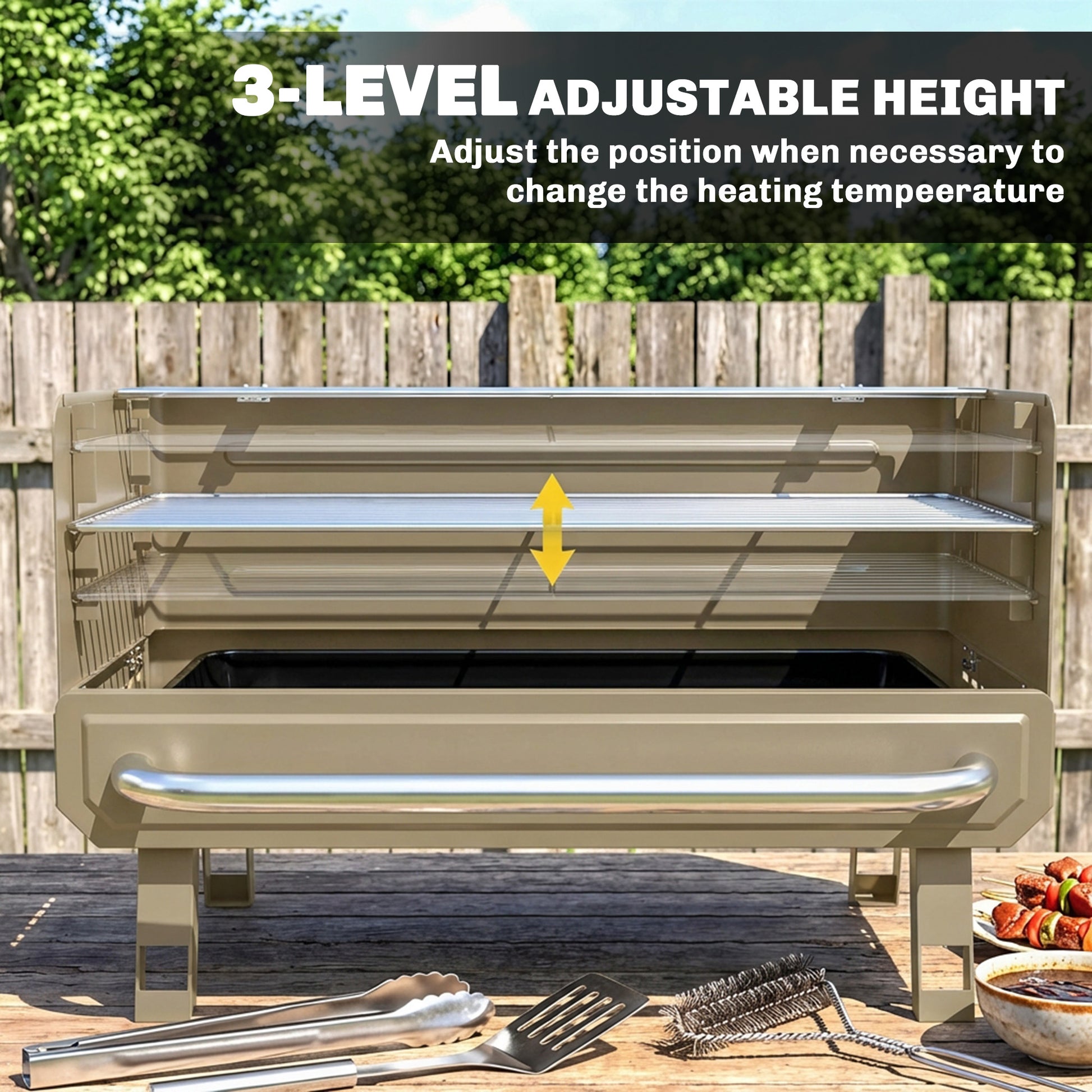 Outsunny Portable BBQ Grill, Charcoal Barbecue Grill with Adjustable Grates, Foldable Legs, Side Shelf for Camping Travel, Khaki