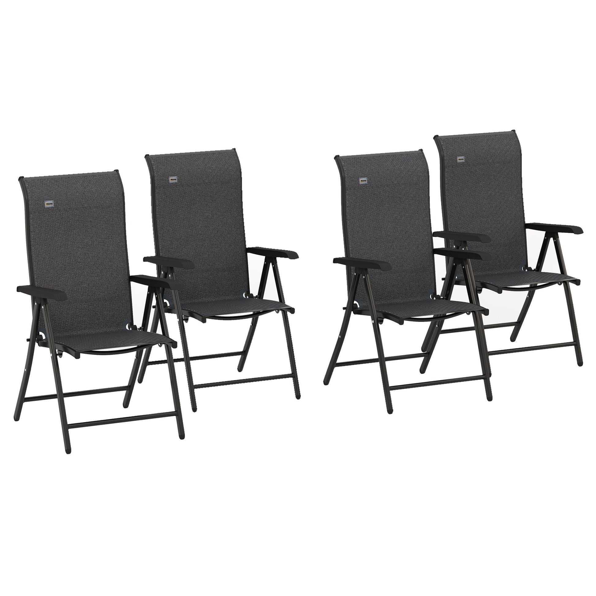 Outsunny Set of Four Folding Garden Chairs, with Seven-Position Adjustable Backs, Grey