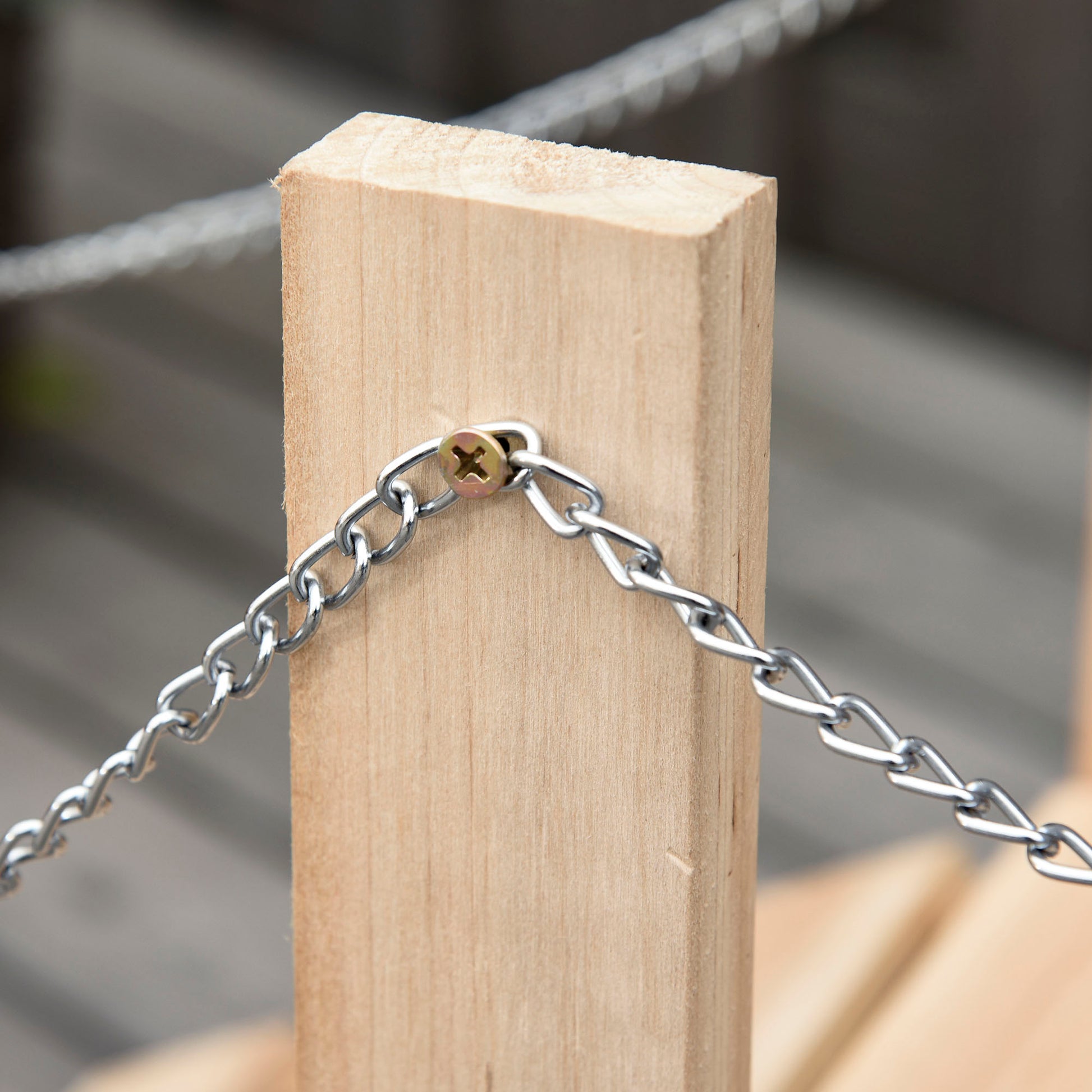 - Curved bridge frame with metal chain side rails for added beauty and safety