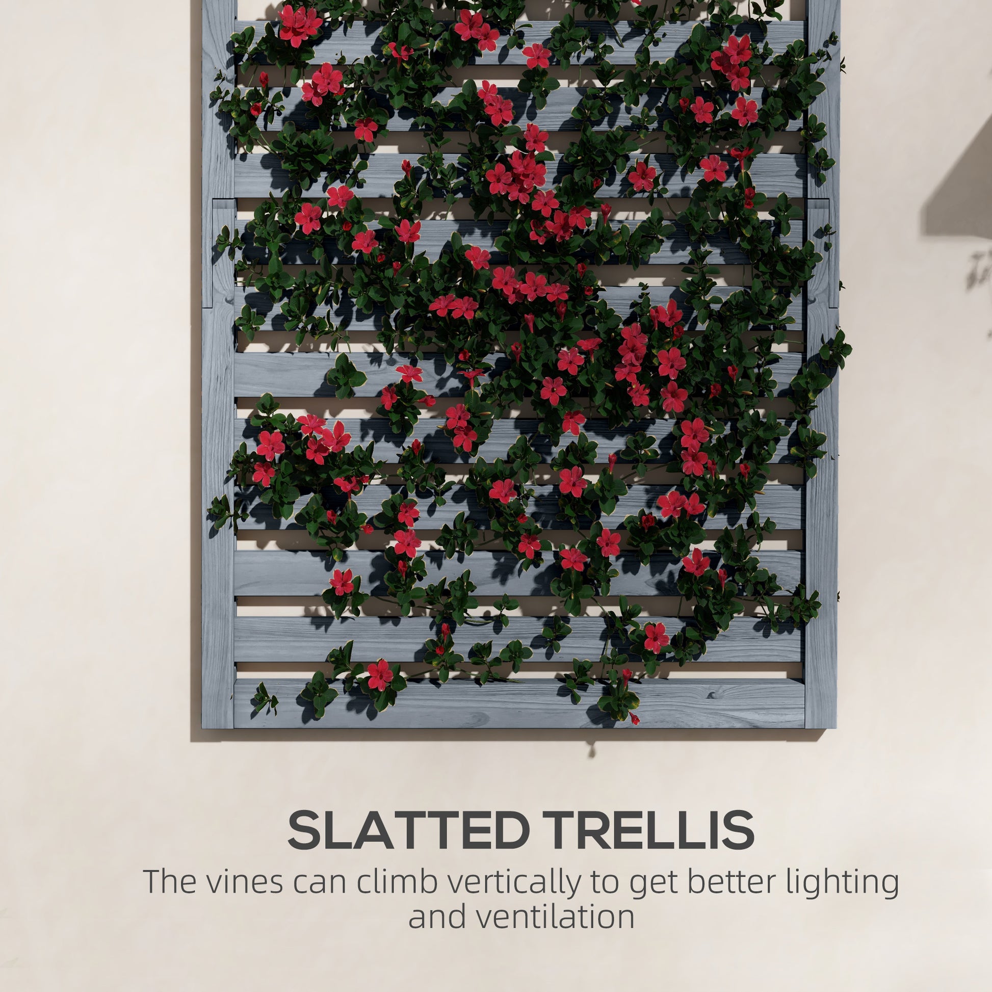Outsunny Wall Mounted Plant Stands Set of 2, Fir Wood Flower Stand with Shelves and Slatted Trellis for Patio, Balcony, Porch