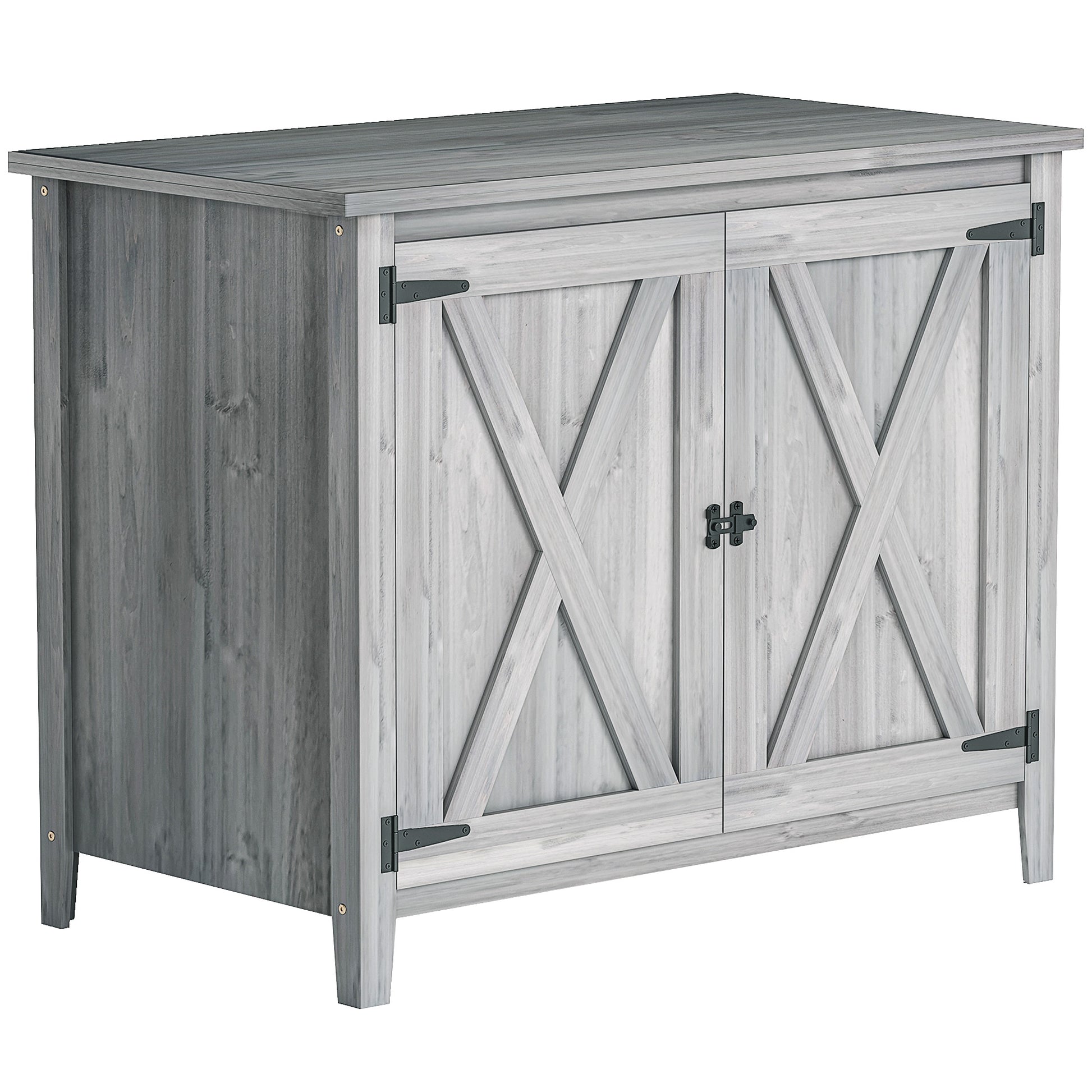 Outsunny Wooden Garden Shed, Outdoor Fir Wood Storage Shed with Shelf and Double Doors, Light Grey