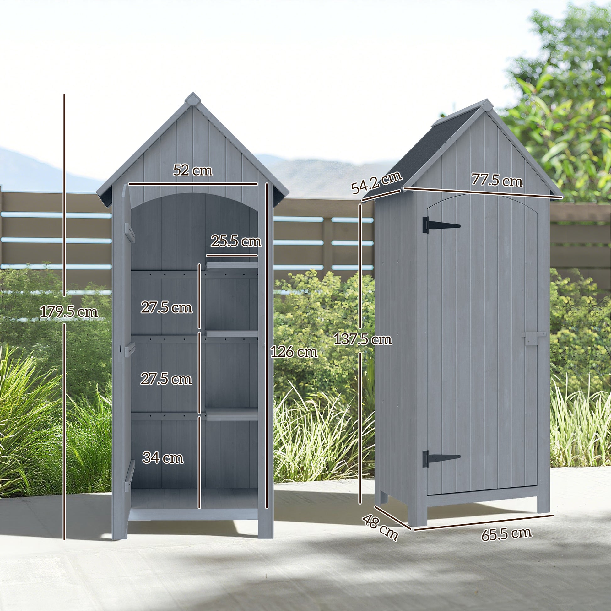 Outsunny Wooden Garden Storage Shed with 3 Shelves, Outdoor Tool Storage Cabinet with Tilt Roof and Lockable Door, 77.5 x 54.2 x 179.5 cm, Grey