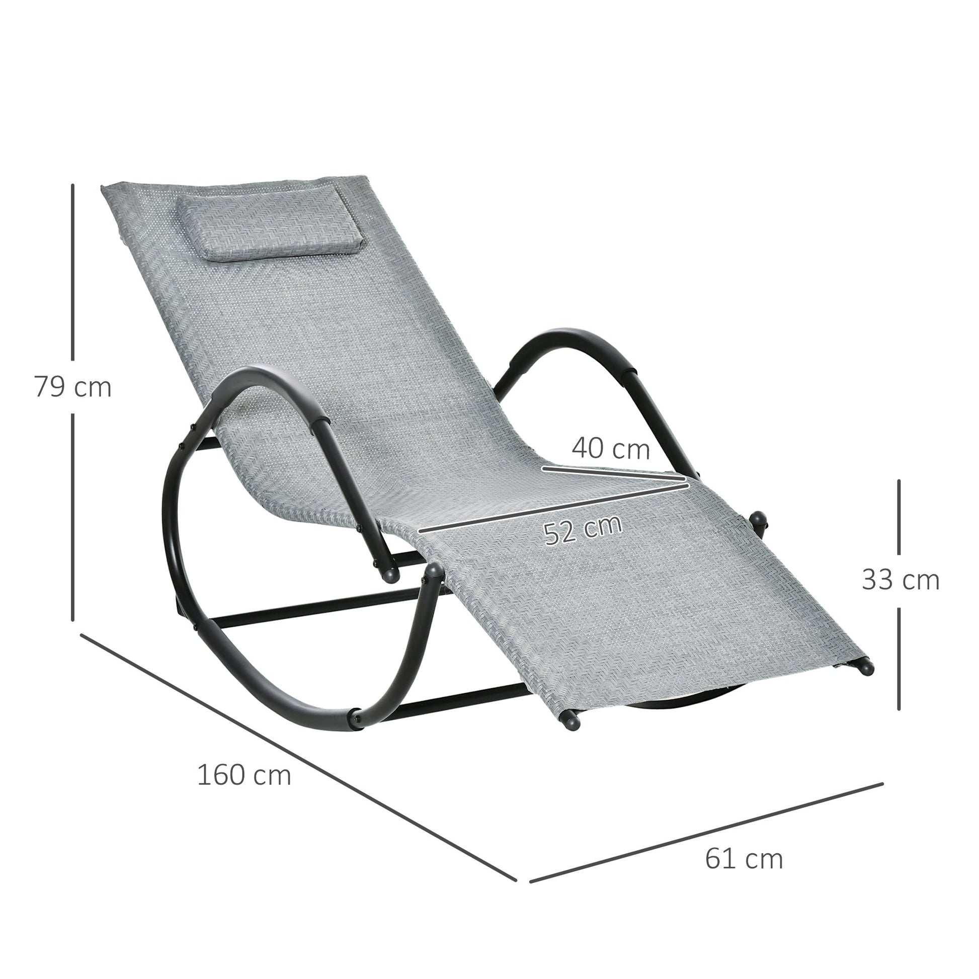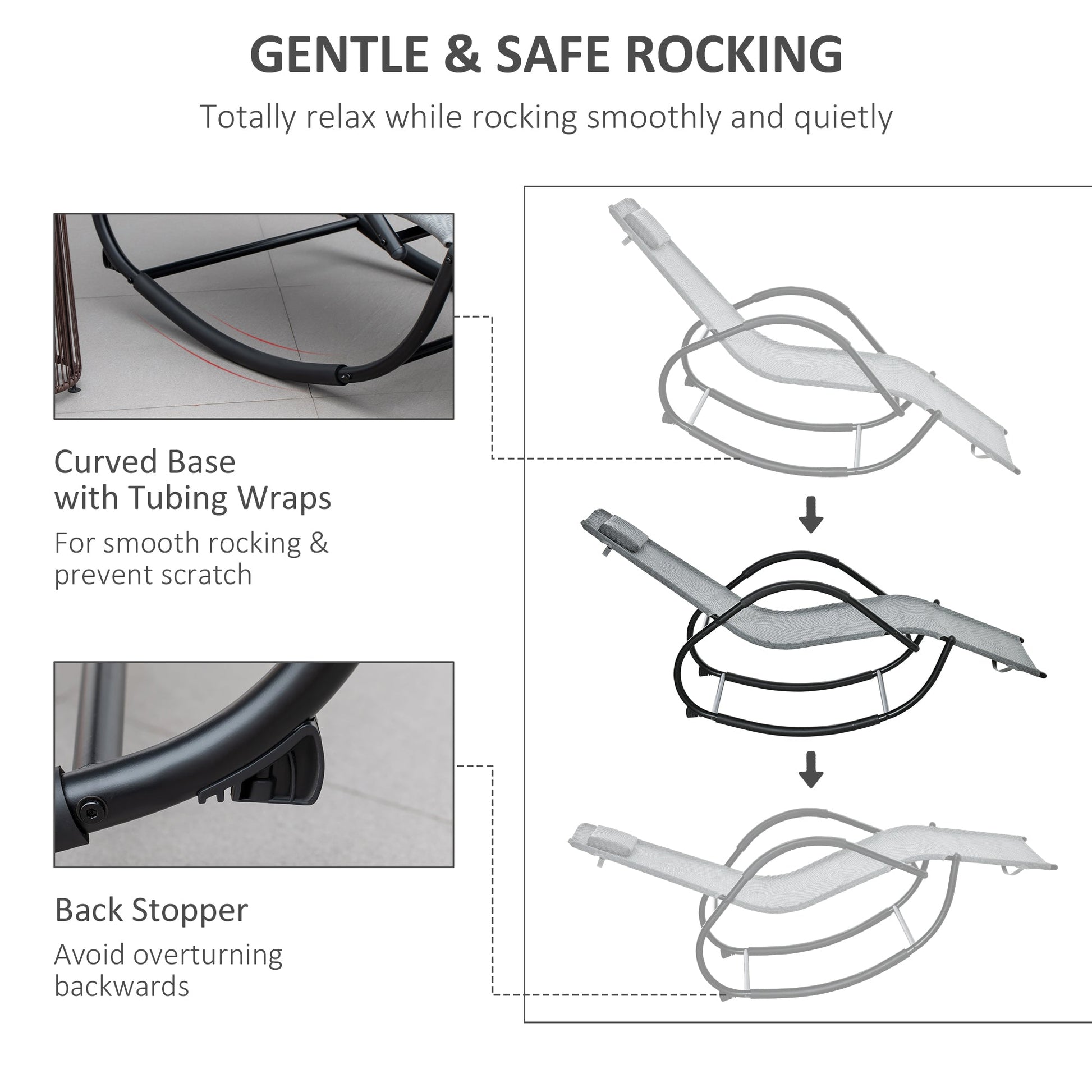 Outsunny Zero Gravity Rocking Lounge Chair Rattan Effect Patio Rocking Chair w/ Removable Pillow Recliner Seat Breathable Texteline - Grey