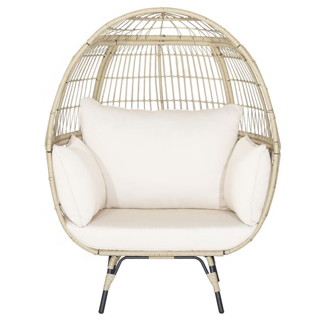 Oversized Rattan Egg Chair with 4 Cushions for Balcony Backyard