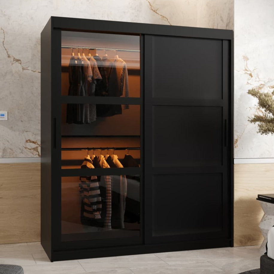 Artemis 2-Door Mirrored Sliding Wardrobe 180cm - Matt Black, Brown or Sonoma Oak