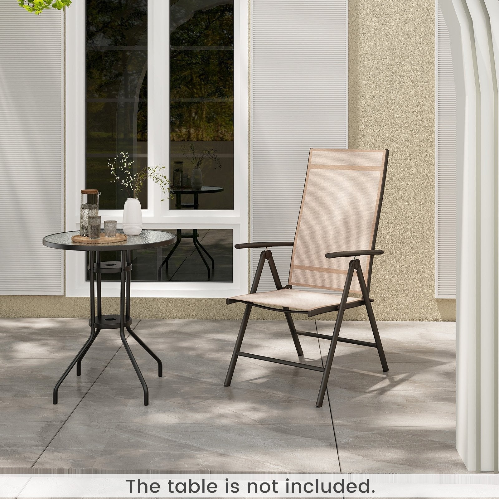 Patio Folding Dining Chairs Outdoor Sling Chairs with 7-Level Adjustable High Backrest-Brown
