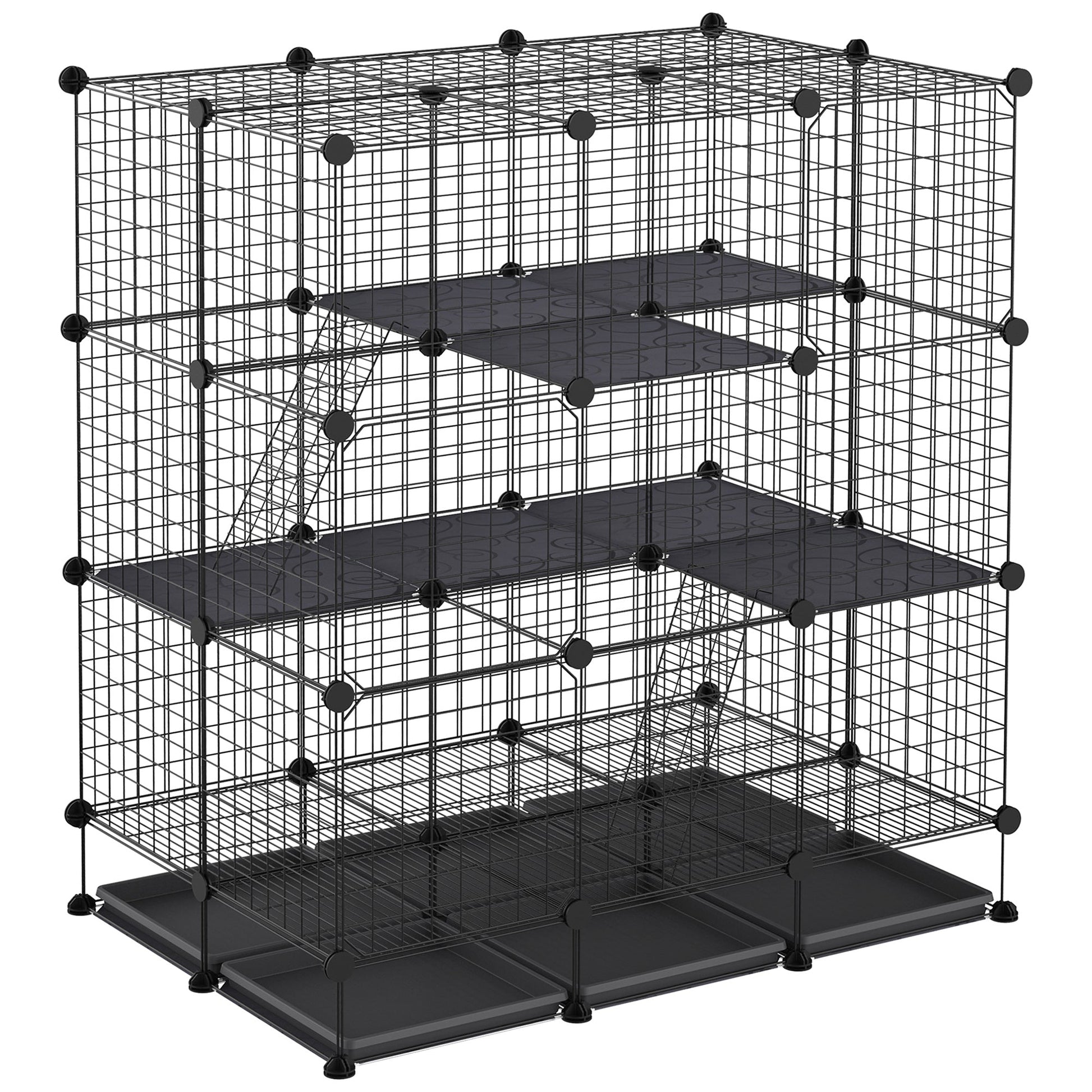 PawHut 3 Level DIY Pet Playpen Metal Small Animal Cage Rabbit Ferret Chinchillas Cage 4 Doors Bottom Trays Black