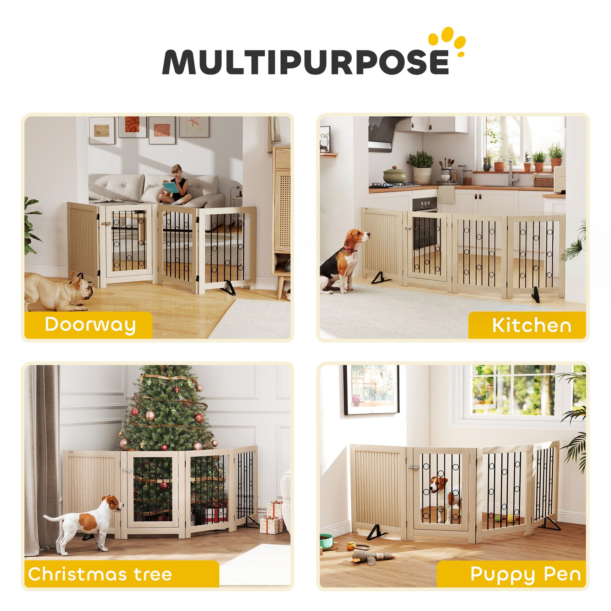 Tired of constantly stepping over or moving your pet barrier? It's a hassle that disrupts the flow of your home. The PawHut freestanding pet gate restores your freedom. Its flexible, folding design fits any hallway or entryway and the built-in door allows you to walk through effortlessly. This dog gate makes managing your space and your puppy simple and stress-free.
