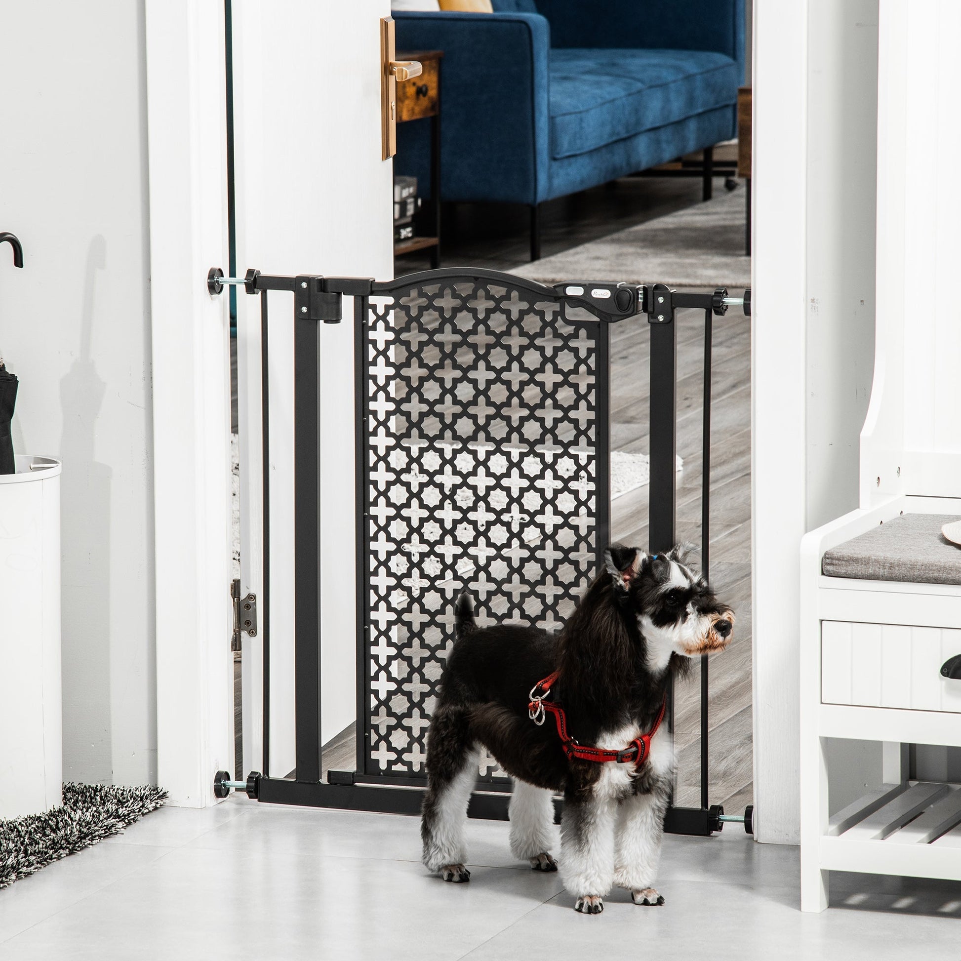 This PawHut pet gate is an efficient way to keep pets in an area, whilst its carved all-black design enhances your home décor. The puppy gate is made from solid steel, keeping it durable and strong – it has an adjustable width of 74-80cm, so it'll fit into different sized spaces with ease. You can simply pass through without your pet escaping, just slide and lift the handle. With a double safety lock at the bottom, it's a secure way to stop pets from going where they shouldn't.
