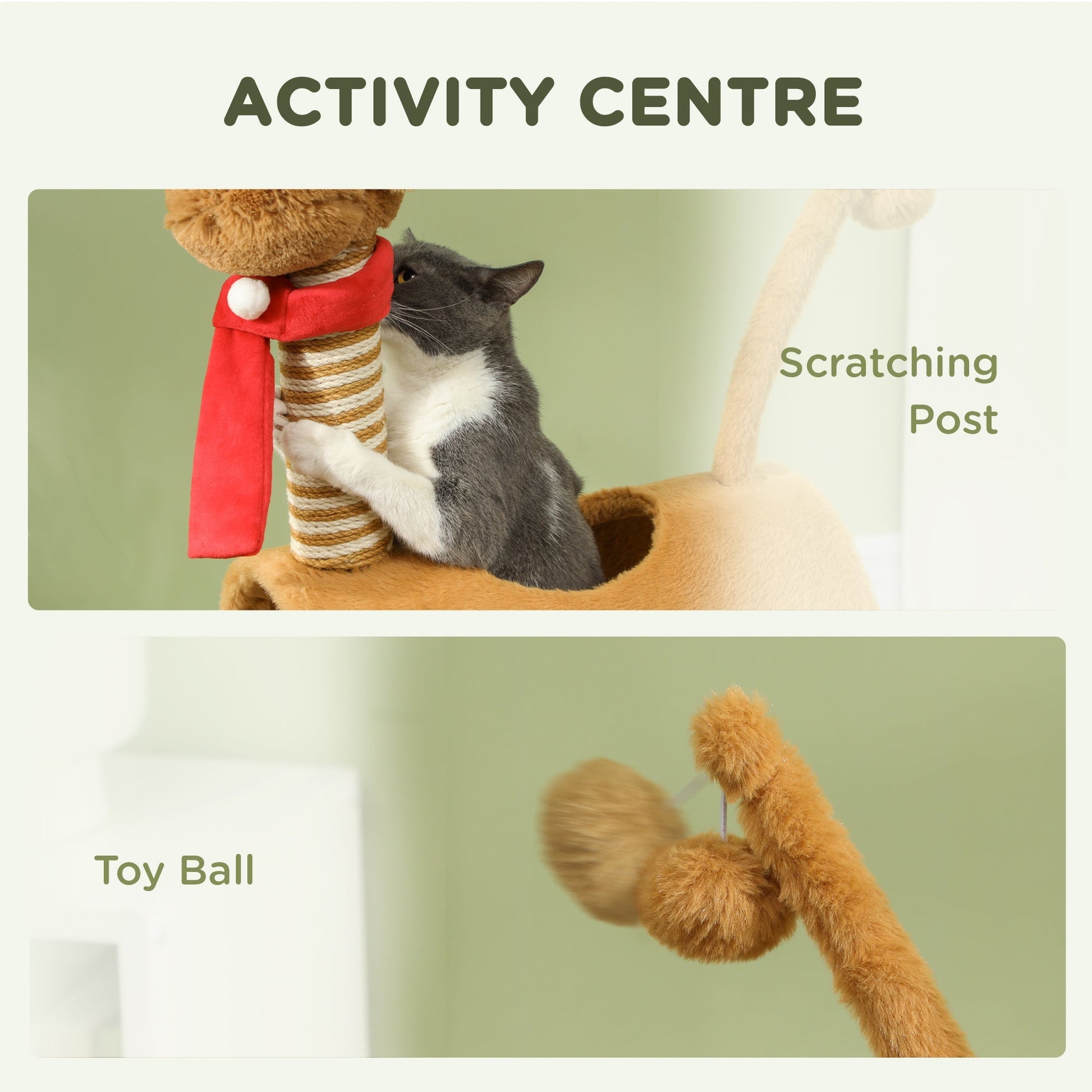 PawHut 98cm Deer-Designed Cat Tree with Scratching Posts, Toy Ball, Tunnel, Brown