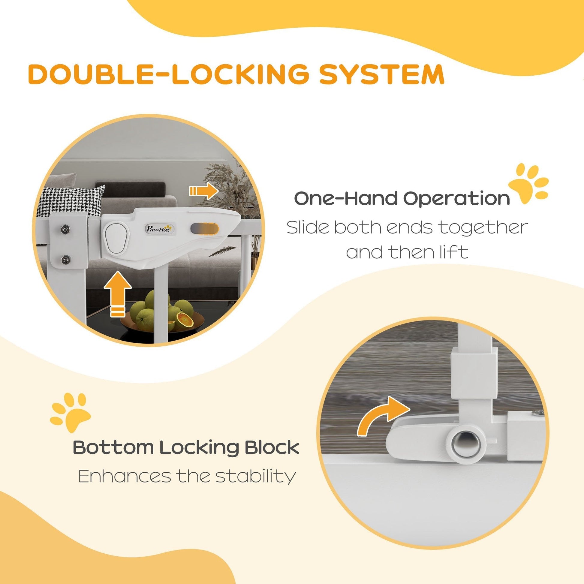 PawHut Extra Tall Pet Gate, Indoor Dog Safety Gate, with Cat Flap, Auto Close, 74-101cm Wide - White