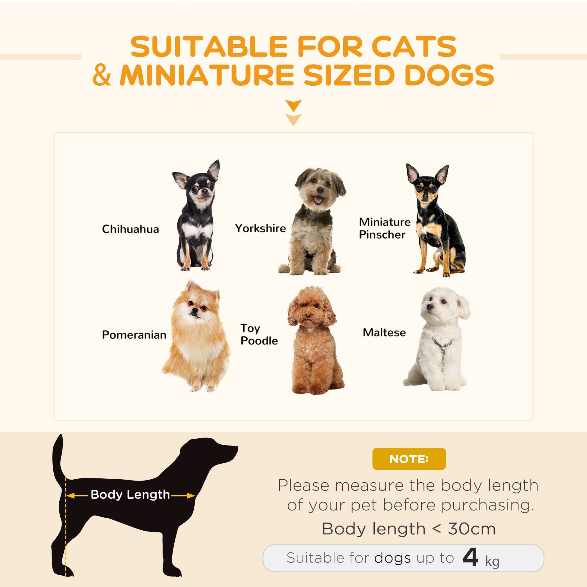 - Solid rattan frame fits miniature dogs less than 30 cm in length and under 4.5 kg in weight
