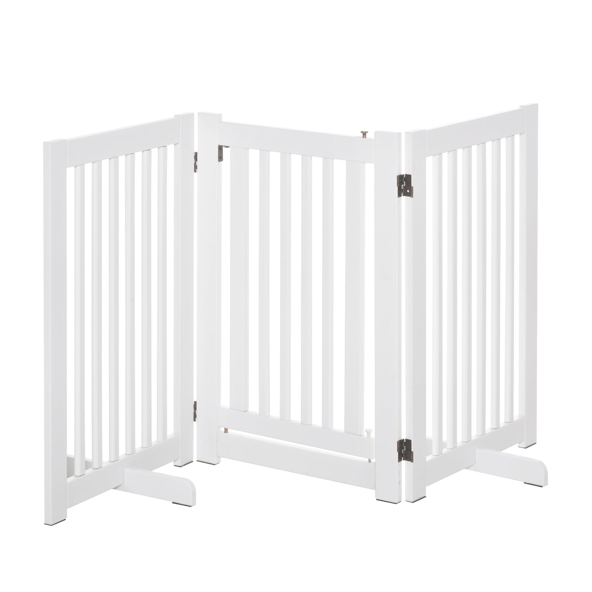 PawHutPet Gates MDF Freestanding Expandable Dog Gate Wood Doorway Pet Barrier Fence w/ Latched Door White