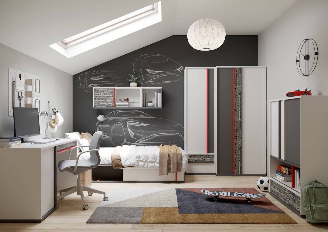 The Philosophy TV Cabinet brings dynamic design and modern utility together in one statement piece. Ideal for bedrooms or lounge areas, it features two open compartments for media consoles, two spacious drawers on roller guides, and a hinged cupboard for discreet storage. With its bold red slat detail and durable laminated finish, this cabinet is built to keep clutter at bay while enhancing the look of any modern interior. Explore the full Philosophy range to create a cohesive space that’s fun and functional.