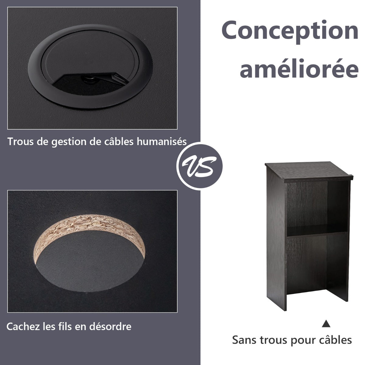 Featuring a slanted desktop, this lecture desk allows speakers to comfortably access their notes or documents while delivering their message with ease. The ergonomic design ensures a natural and relaxed posture to reduce strain. With a spacious storage shelf, this podium stand provides ample space for storing books and presentation aids. Moreover, the upgraded design of the speaking lectern is equipped with cable holes, which allows for easy and discreet cable management. This podium stand is a versatile and functional addition to any speaking environment, including a classroom, conference room, restaurant, church, and seminar. If you are looking for such a product, do not hesitate to buy it! User-friendly Desktop Design: The podium stands in 117 cm height and features a tilted desktop that provides a cosy and convenient speaking angle for speakers. The barrier stopper is designed to prevent items from slipping down and the cable hole keeps messy wires in order. Convenient Storage Space: The open storage shelf provides ample space to keep your bottles, notes, books, or files organized and accessible. Moreover, thanks to the cable holes, this podium stand allows for easier integration of audiovisual equipment than other ordinary lectern desks without cable holes. Built with Strength: Made of thickened and durable engineered wood, the lectern desk will support your speaking engagements for years to come. In addition, the extra support bar at the bottom ensures that it remains steady, even during dynamic speeches or presentations. Extensive and Functional Accent: This versatile standing desk is thoughtfully designed for speakers, pastors, or lecturers. Moreover, the podium stand offers a functional solution for various places, such as public speaking engagements, educational purposes, religious sermons, and corporate events. Assembly and Care with Ease: So simple its structure is that there is no need to worry about how to put all the parts together. Detailed instruction helps a lot. Easy clean-up just using a soft cloth makes for good maintenance and a simple elegant look.