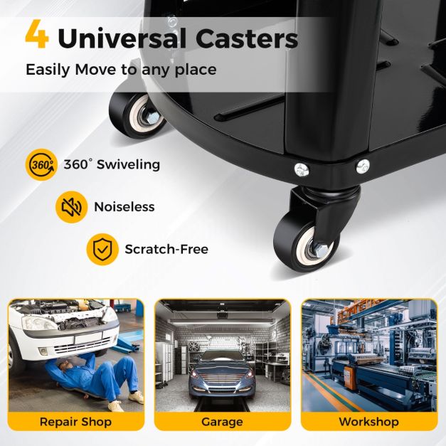 - 1 × Rolling Workshop Stool with Storage Removable Mechanic Seat with Equipment Tray Tool Holder Load 136 kg Black