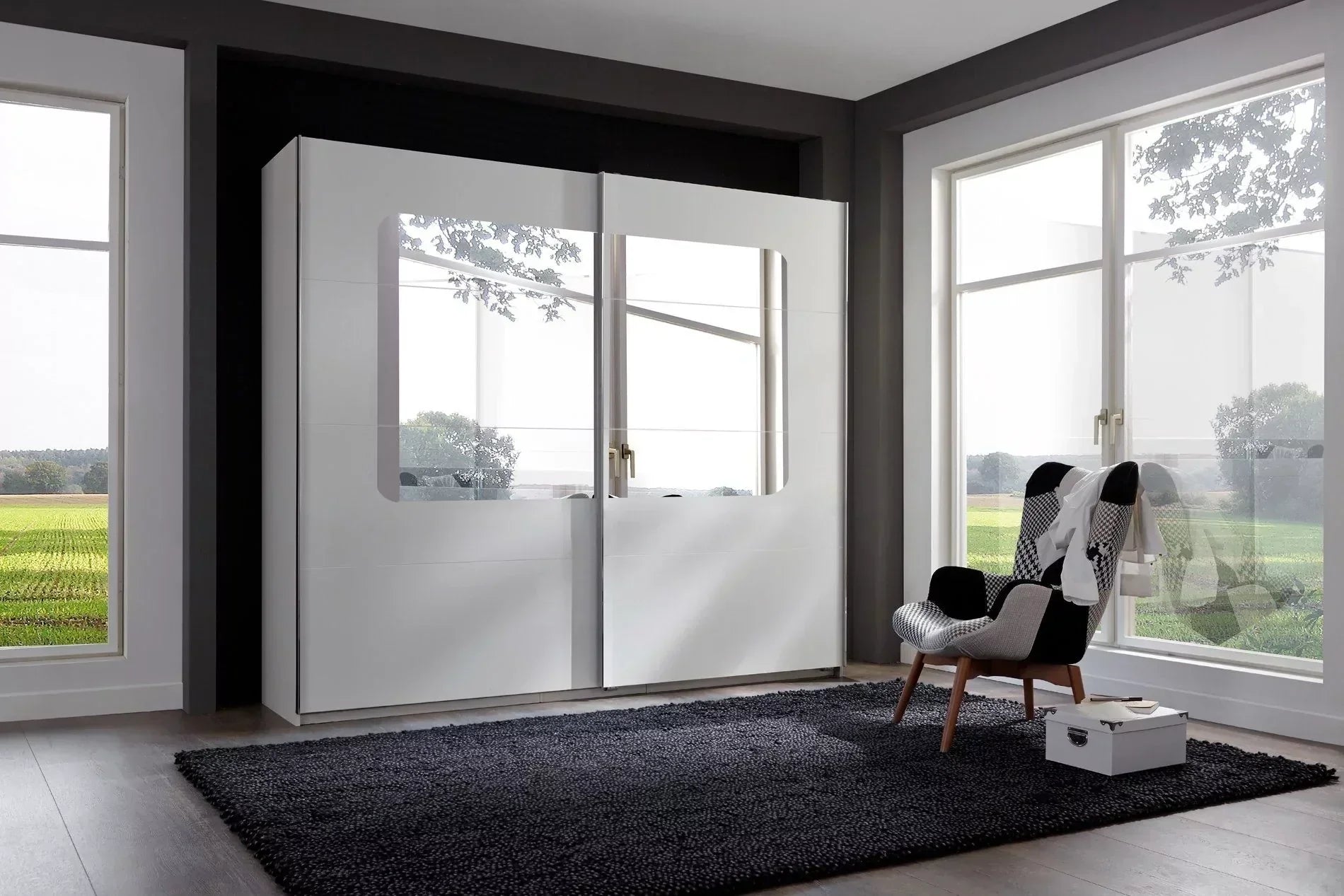 This BERTEN Sliding Wardrobe is Elegant And Will Give A Contemporary Look To Your Bedroom. This wardrobe has two sections, each of which has a hanging rail and shelf which is perfect for additional storage space.