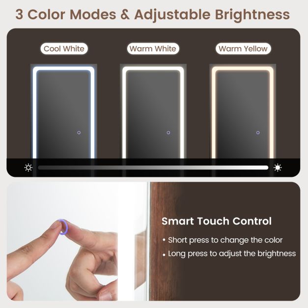 Standing Jewelry Cabinet with LED Lights Lipstick Box and 2 Drawers-Walnut