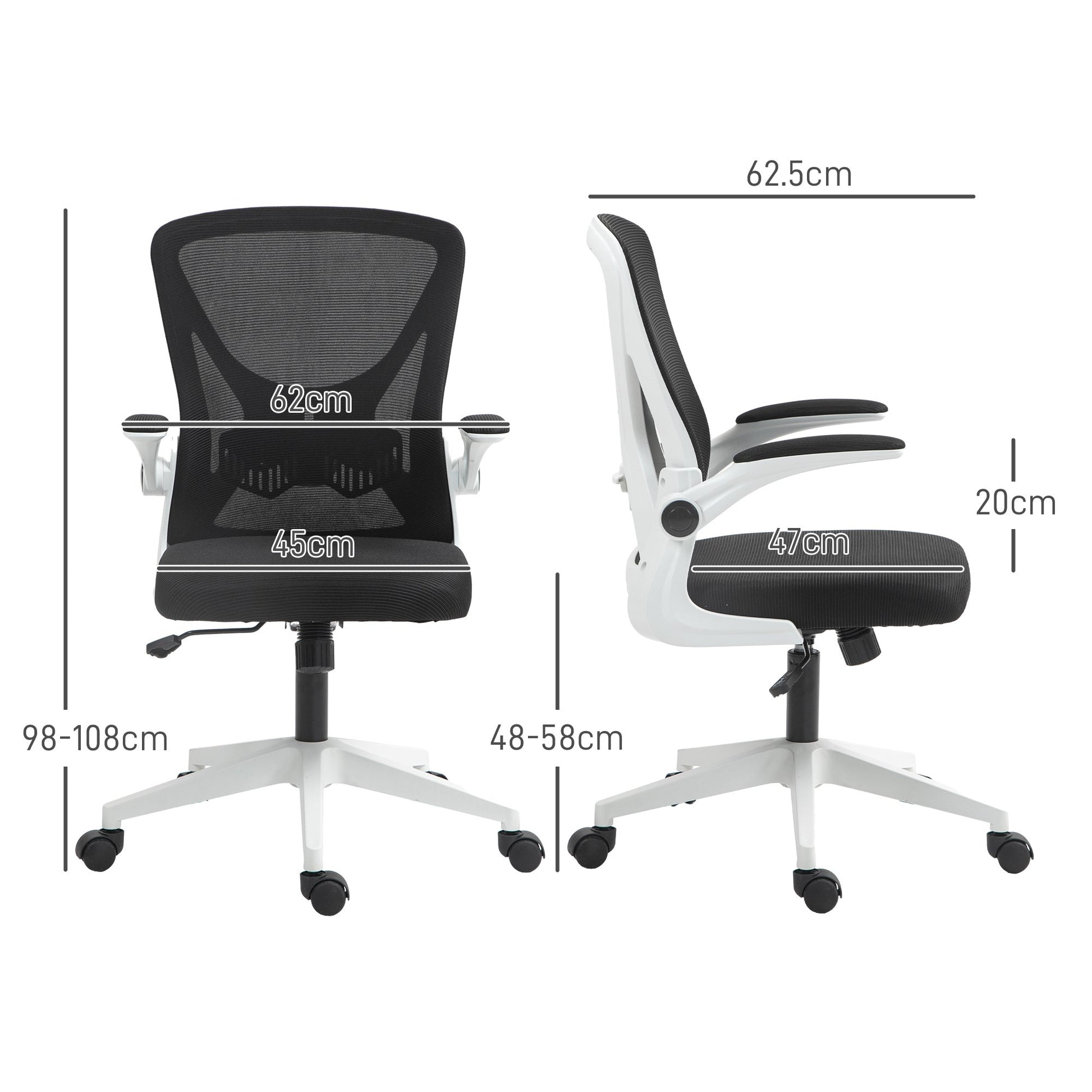 Vinsetto Mesh Back Office Chair, with Flip-Up Arms - Black and White