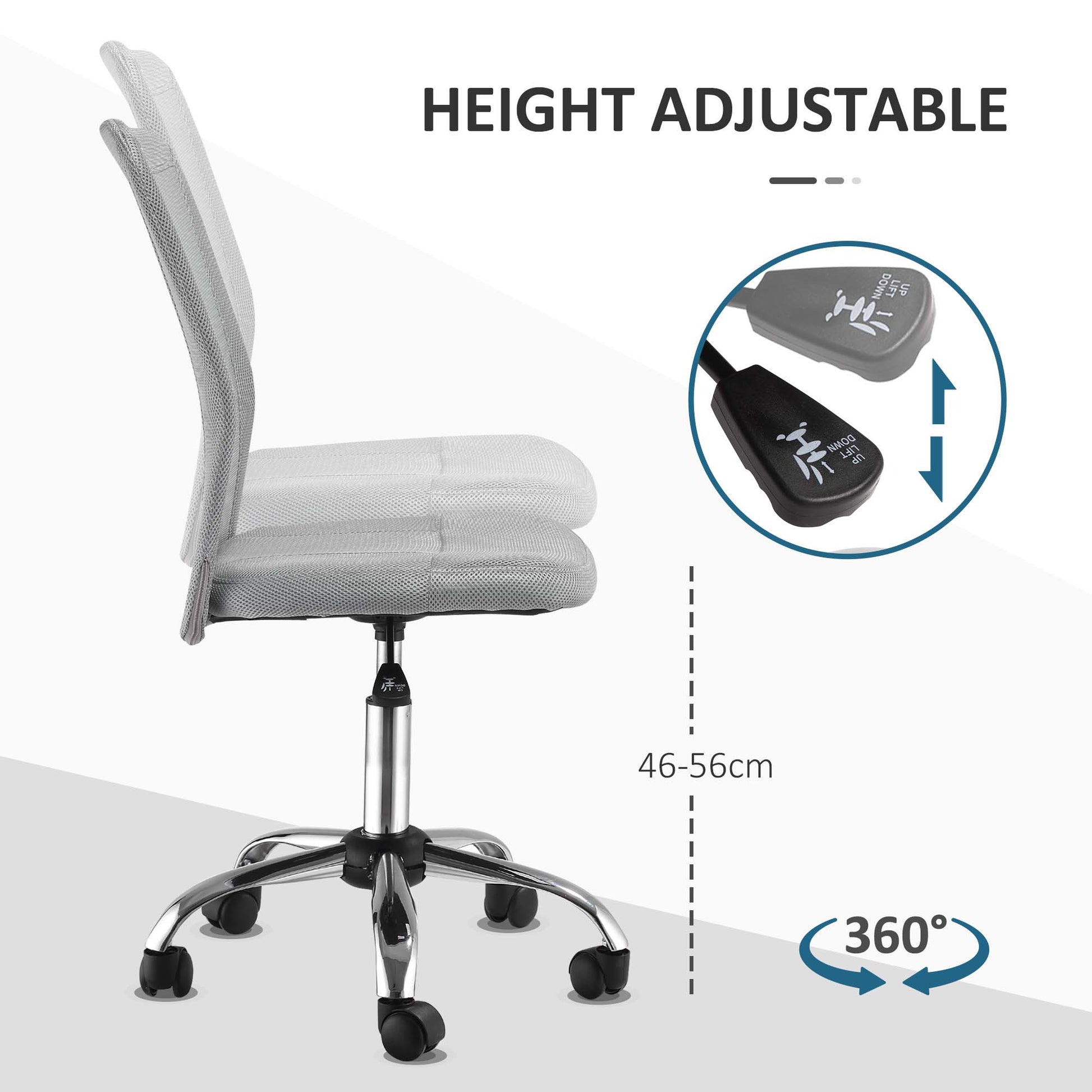 Vinsetto Office Chair, Armless Desk Chair, Adjustable Computer Swivel Chair with Rolling Wheels and Mesh Back for Home Work Study, Grey