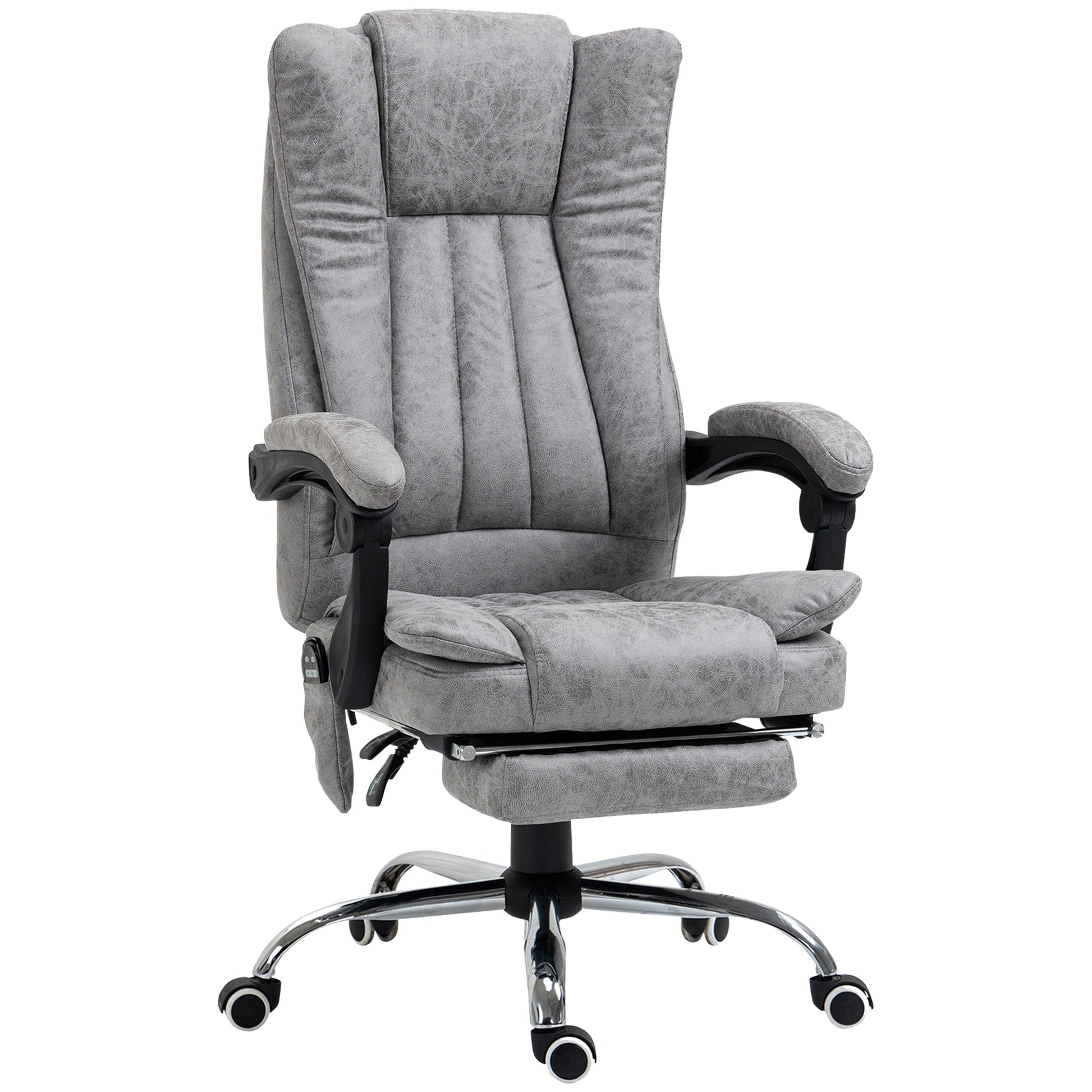 Vinsetto Office Chair with Massage and Heat, Microfibre Reclining Computer Desk Chair with Footrest and Adjustable Height, Swivel Wheels for Home Office, Grey