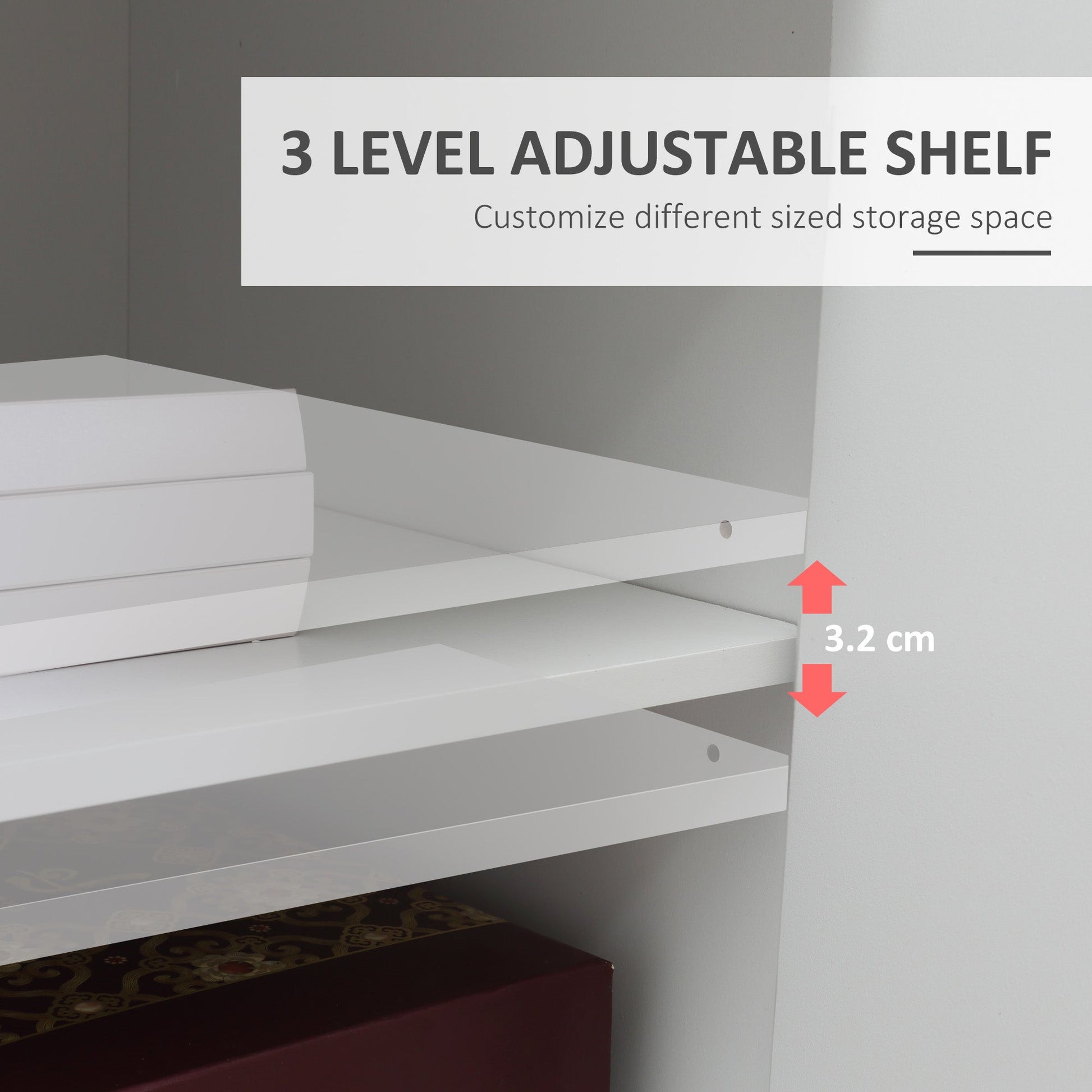 - Adjustable Shelf Size: 56W x 35D cm
