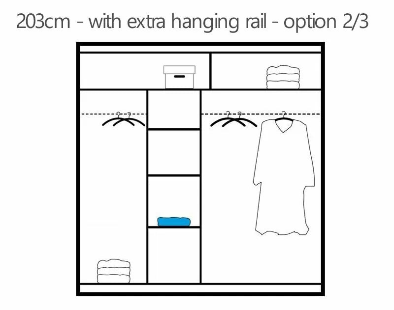 The Vista Mirrored Sliding Door Wardrobe is the perfect combination of style and practicality. It has the storage you want and the style you will love. It comes in Black, White and Oak matte finish with ample storage shelves and hanging space. The Vista wardrobe is also fully customisable on the inside- with extra hanging rails, you can turn it from half hanging and half shelving space to a quarter as shelves or even all hanging. Plus, choose where to have the shelves: on one side, or towards the middle.