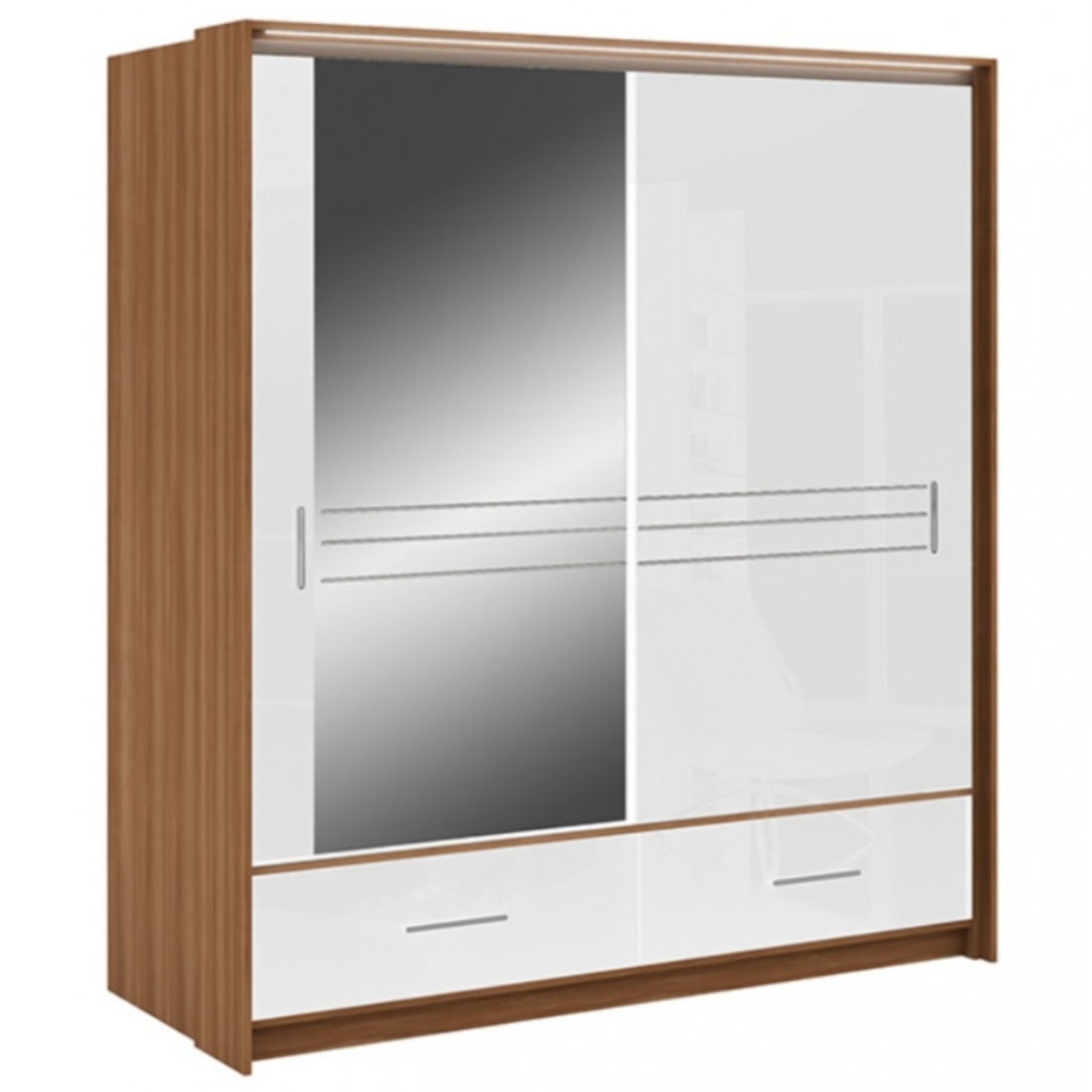 Wiltshire 208cm Sliding Door Wardrobe with Mirror Walnut with 2 Drawers - White Gloss and Black Gloss