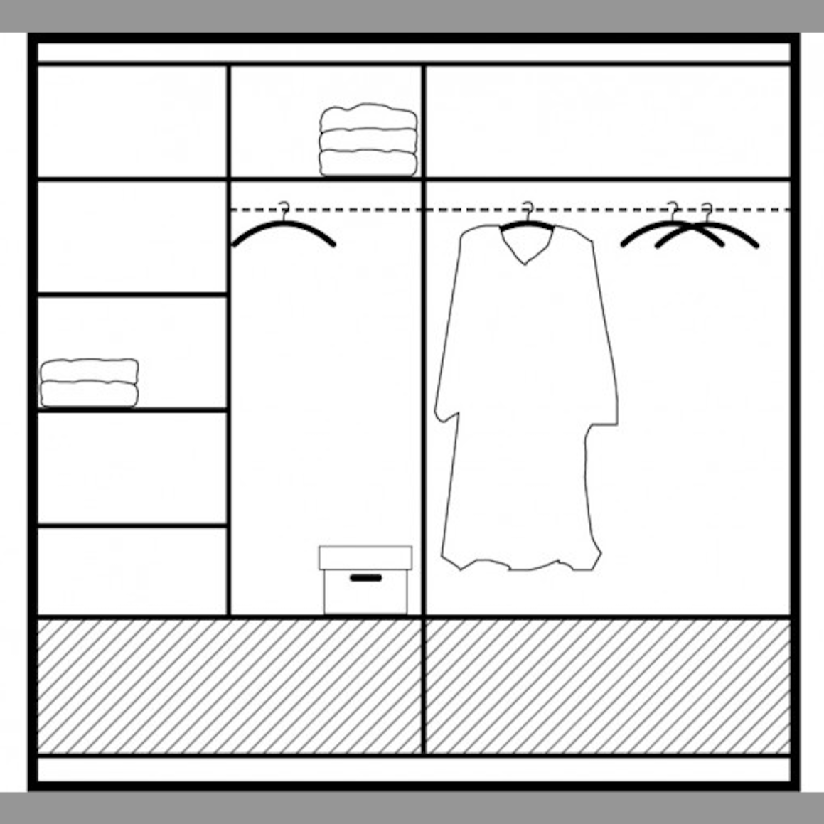 The Wiltshire wardrobe will be a perfect choice for everyone who is looking for a modern and functional piece of furniture with a lot of storage. Inside the wardrobe there are 2 rails for all the hanging clothes, a row of practical shelves, 2 spacious drawers and 3 upper shelves. It has been created from the high quality materials with a big mirror on the sliding doors, which will brighten your room as well as optically enlarge it. On the top panel of the wardrobe there is a LED light which will help you find a perfect outfit for an evening out or apply your morning makeup. The wardrobe comes in 2 colour options: walnut base/black high gloss doors or walnut base/white high gloss fronts.