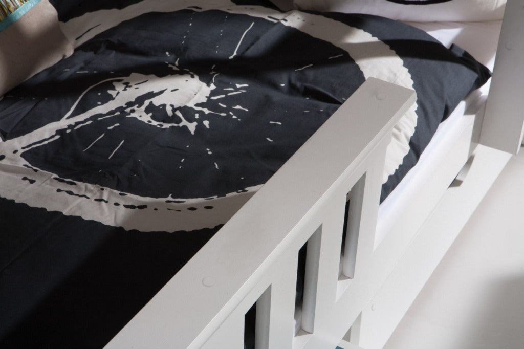 The Tezo Wooden Bunk Bed is where practical design meets contemporary style. Perfect for growing families, this bunk bed is crafted from durable pine and finished with safe, water-based paint. Two built-in drawers offer hidden storage for bedding, toys, or essentials, while the universal ladder can be installed on either side for maximum flexibility. Suitable for children and teens, the bed can also be split into two single beds as needed. Available in multiple colours and with optional foam or Bonnell mattress upgrades, the Tezo delivers comfort and convenience in one smart package.