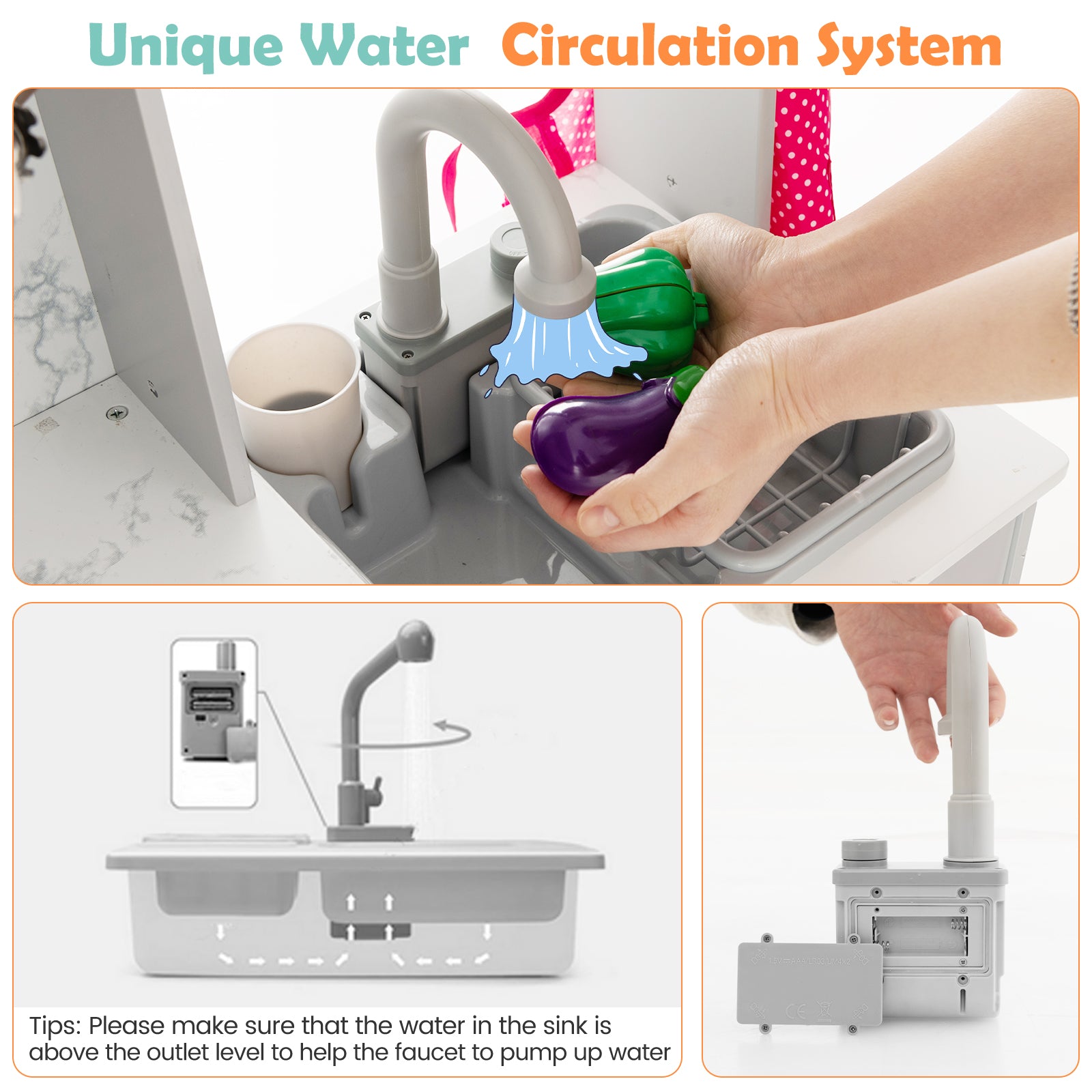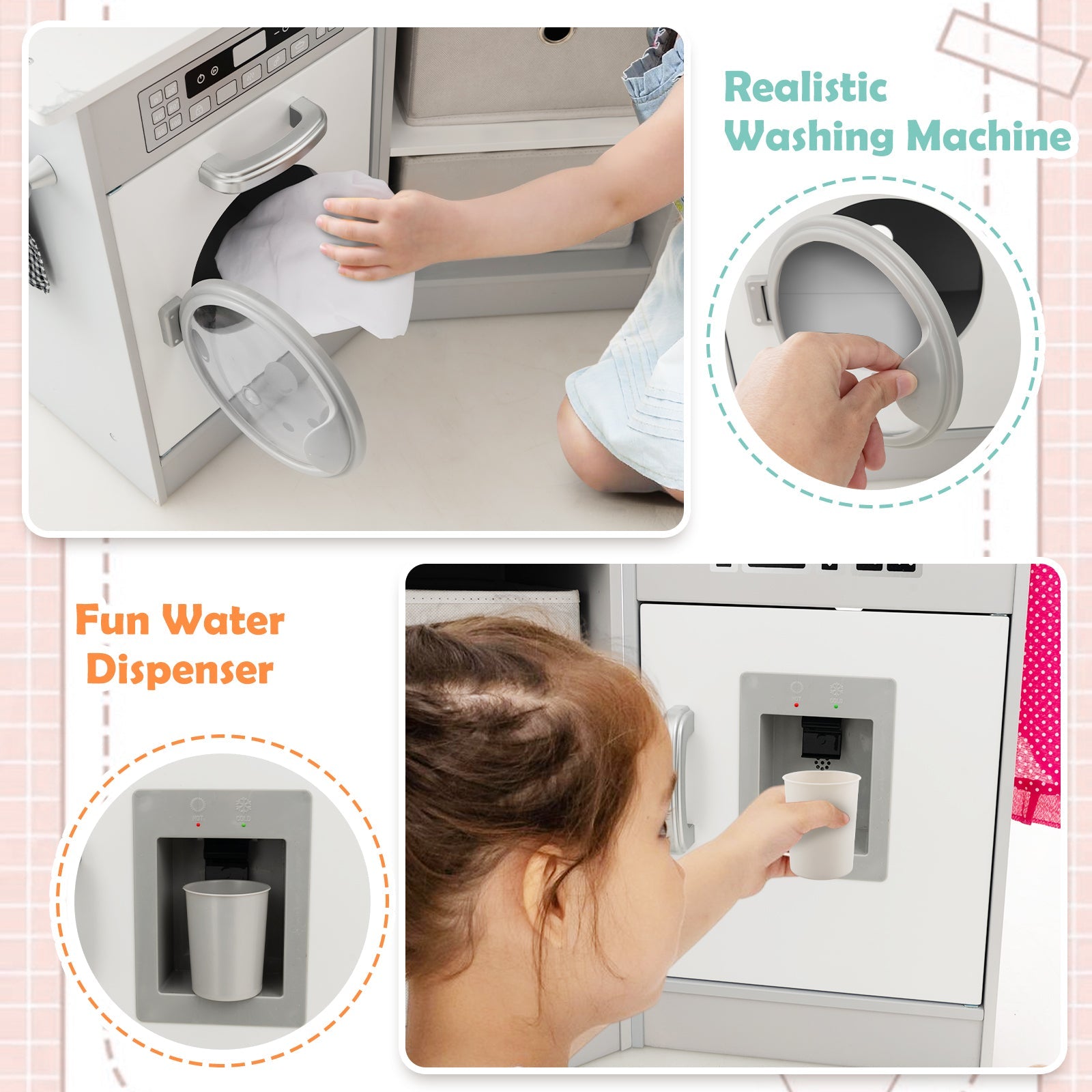 This wooden kids play kitchen playset with realistic lights and sounds-gray is designed to keep your space organised while delivering reliable everyday functionality and a clean, modern look.