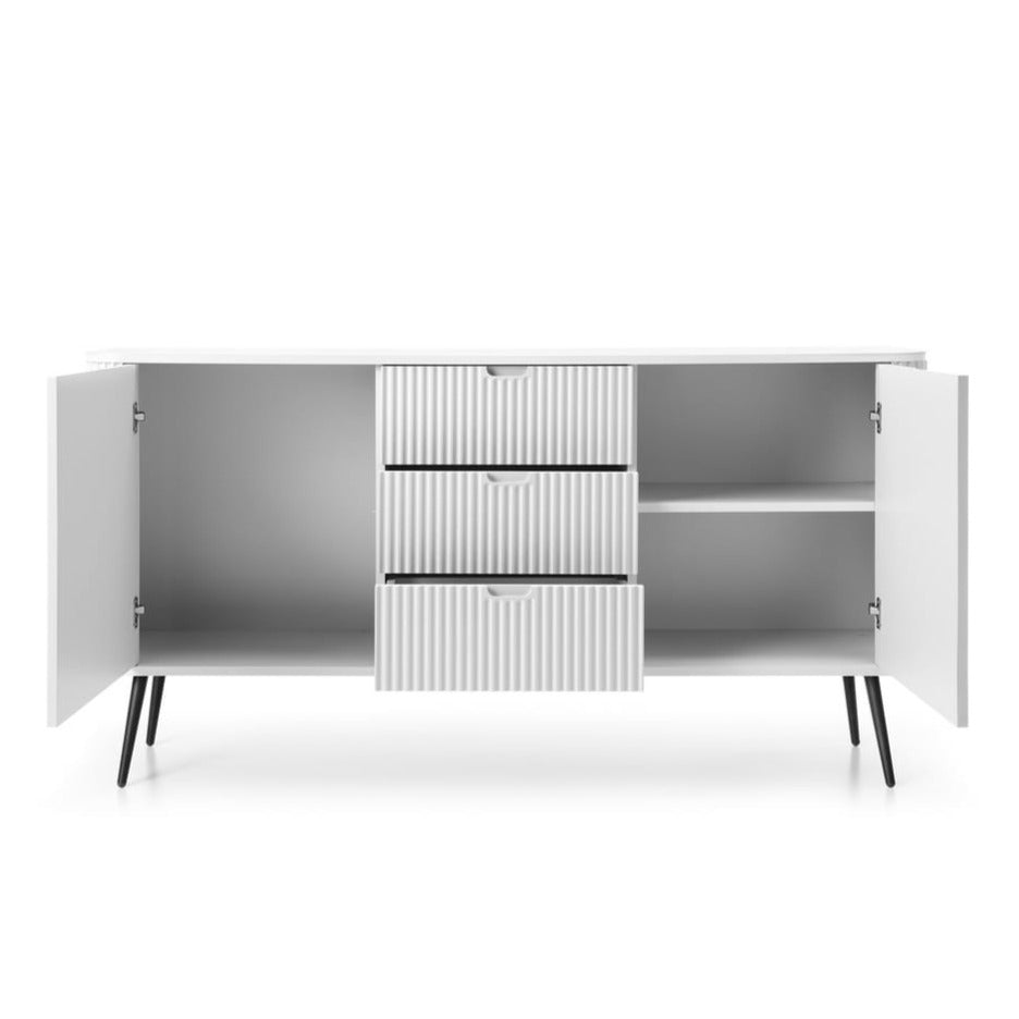 Elevate your interior with the Zova Sideboard Cabinet. This beautifully crafted piece not only adds a touch of sophistication but also provides generous storage with its sleek design. Featuring two hinged doors and three soft-close drawers, this sideboard is perfect for keeping your essentials organized and at hand. Its sturdy construction and modern aesthetic make it a must-have for any stylish home.