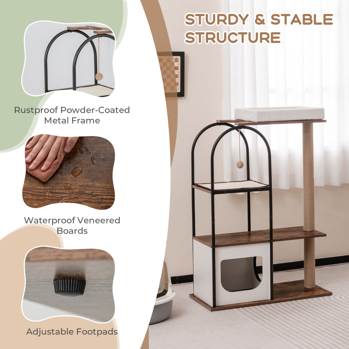 This 118 cm tall cat tree tower with metal frame-white is designed to keep your space organised while delivering reliable everyday functionality and a clean, modern look.