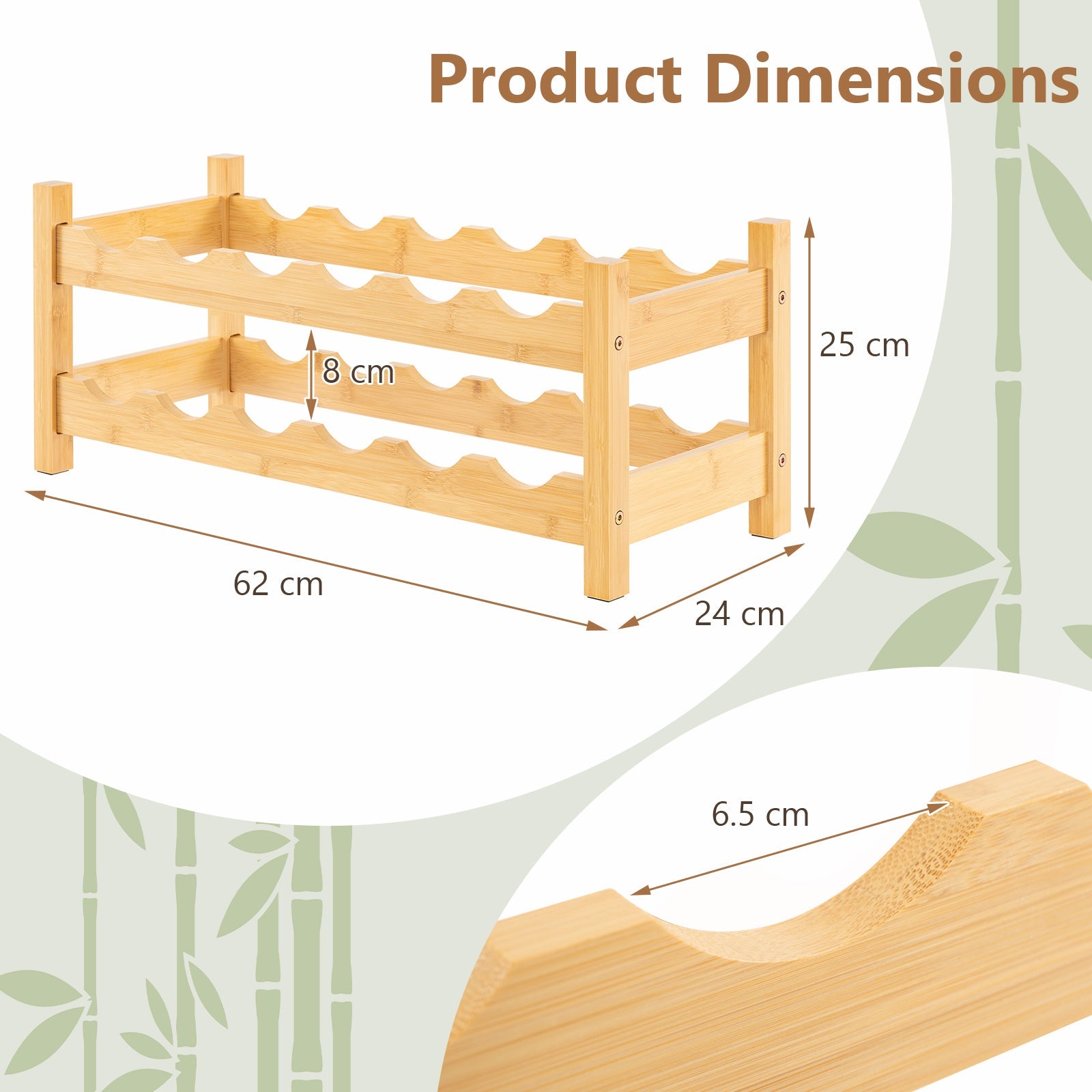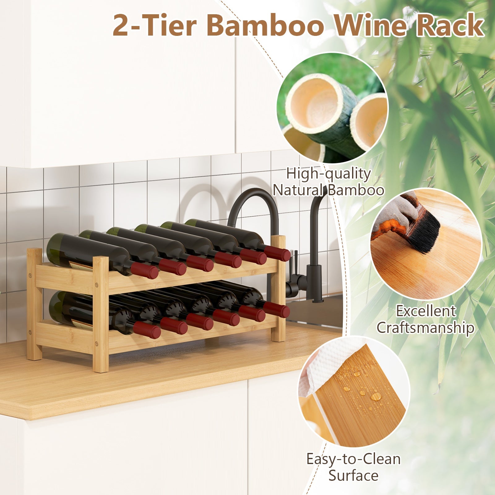 12 Bottle 2-Tier Wine Rack for Kitchen-Natural