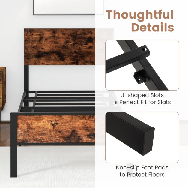 12 Metal Slats Supported Bed Frame with Headboard and Footboard-Single