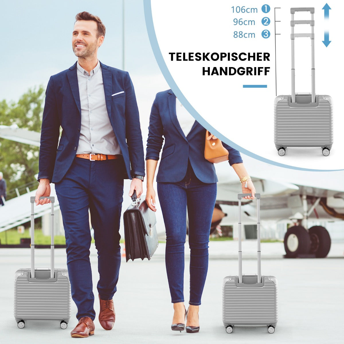 - 1 × 16 Inch Under-seat Carry On Luggage with Spinner Wheels and Laptop Compartment-Sliver