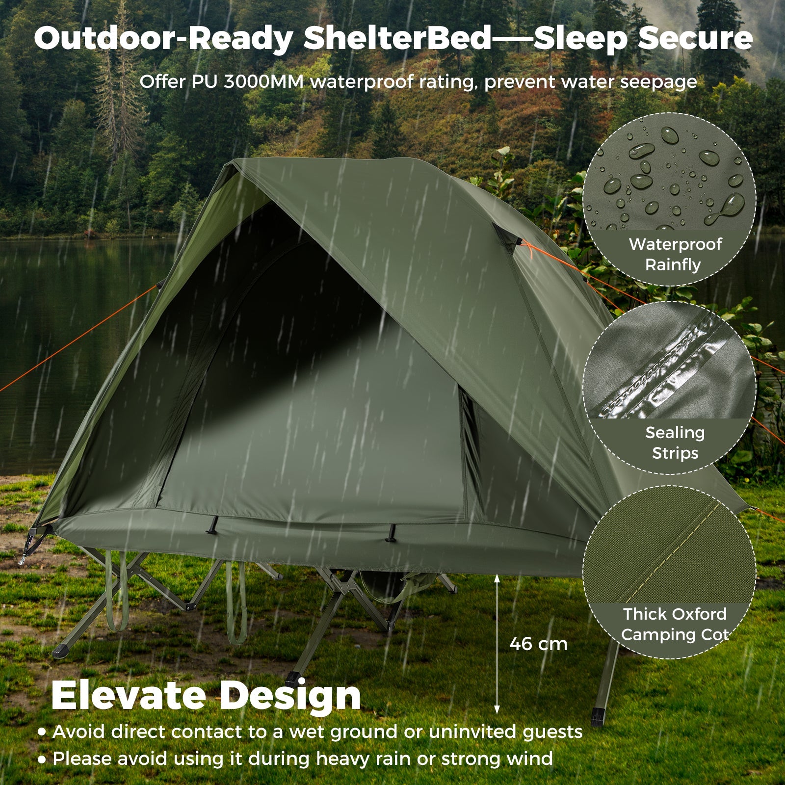 2-Person Camping Cot Tent Foldable Off-Ground Camping Combo for Adults-Green