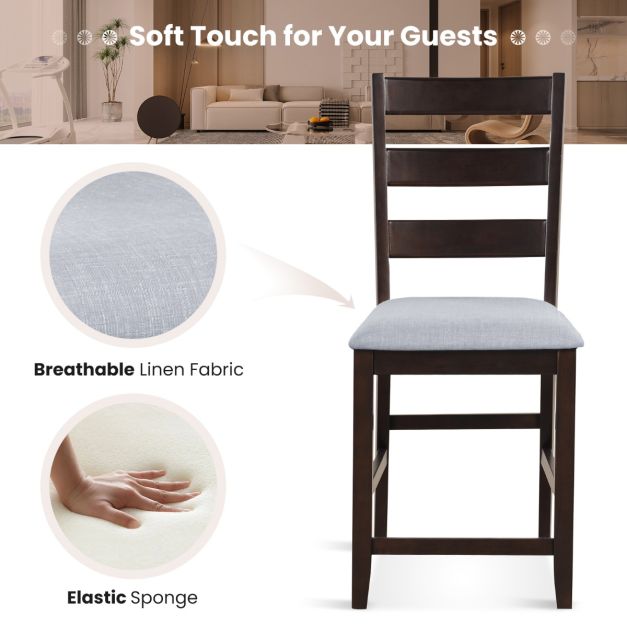 2-Piece Counter Height Bar Stool Set with Padded Seat and Rubber Wood Legs-Brown