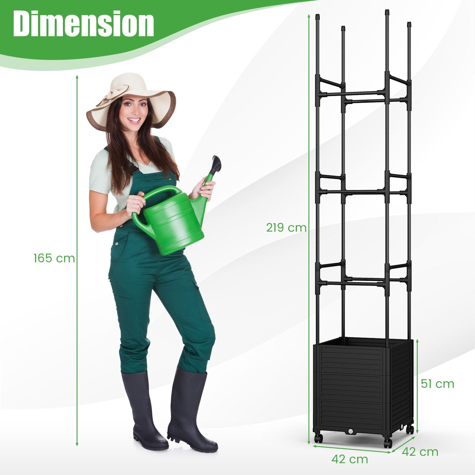 219 cm Raised Garden Bed with Trellis and Wheels for Climbing Plants-Black