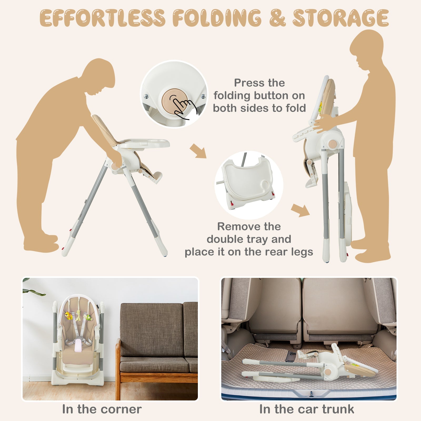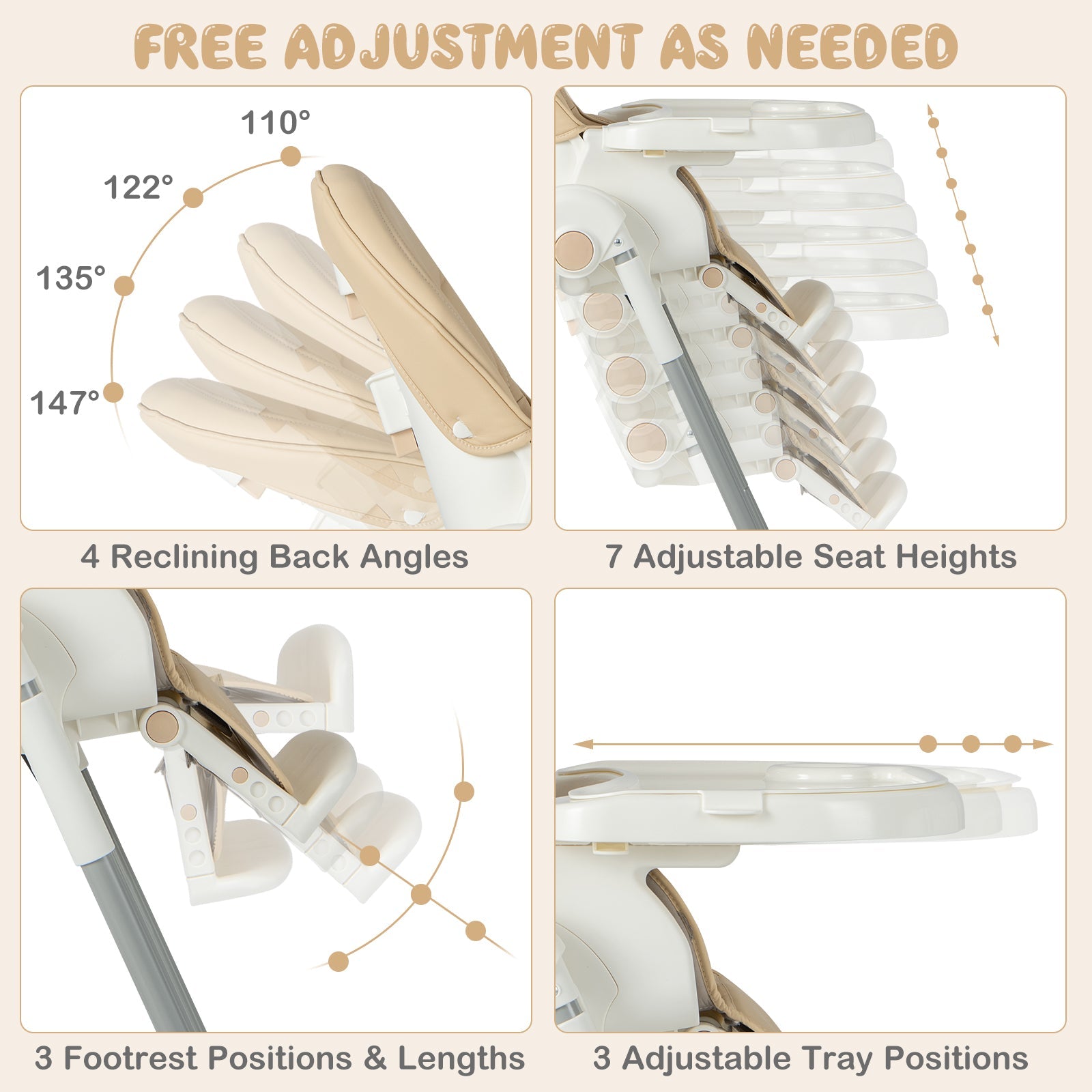 4-in-1 Foldable Baby High Chair with 7 Adjustable Heights and 4 Reclining Angles-Yellow