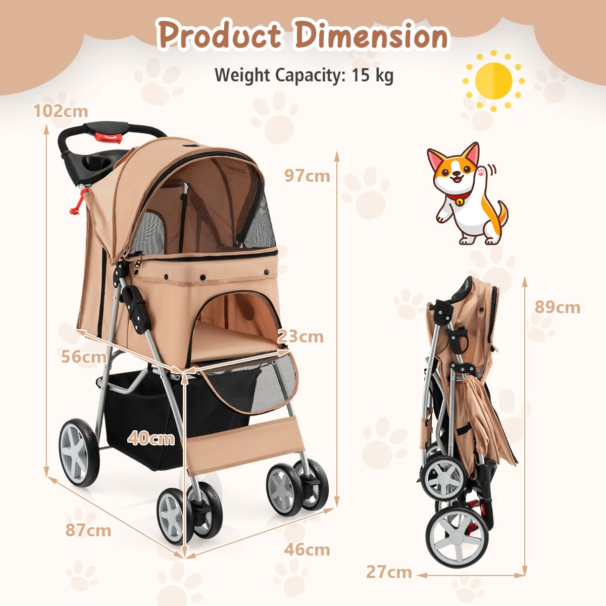 This 4-wheel folding pet stroller with mesh windows & storage basket-beige is designed to keep your space organised while delivering reliable everyday functionality and a clean, modern look.