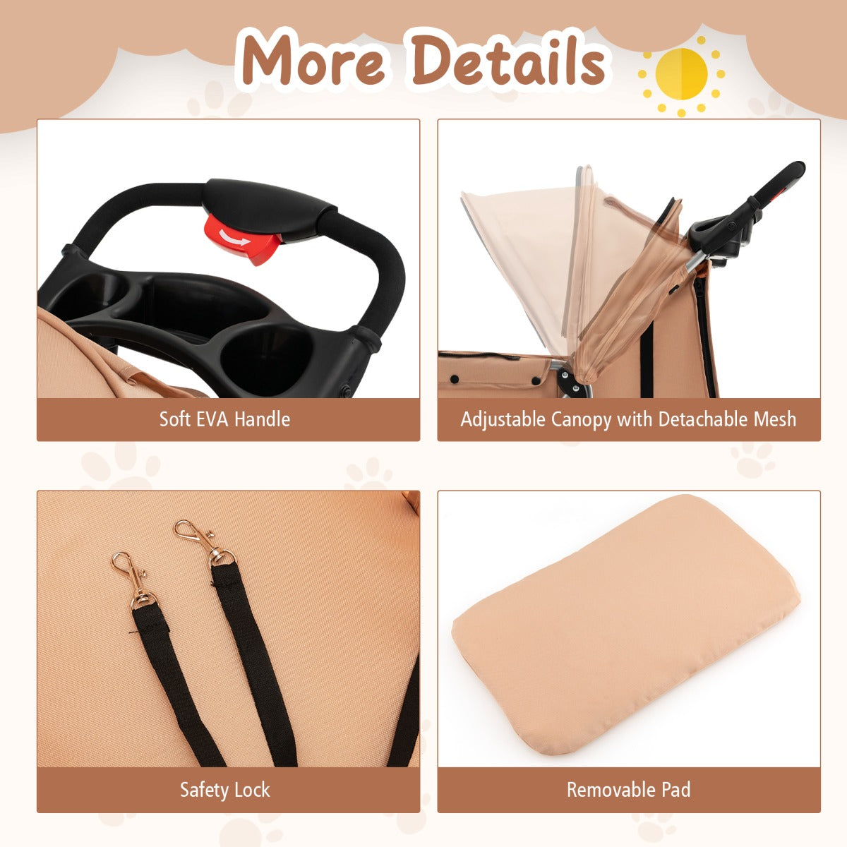 - 1 × 4-Wheel Folding Pet Stroller with Mesh Windows & Storage Basket-Beige