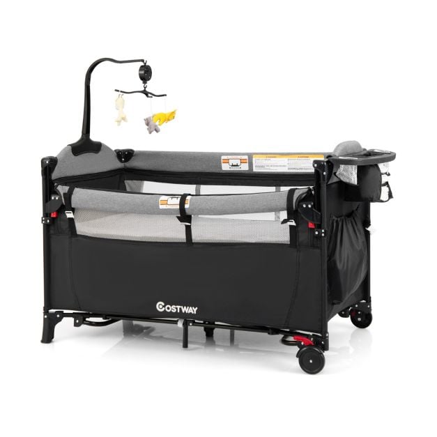 - 1 × 5-in-1 Convertible Baby Bed with Changing Table & Storage Bag Black