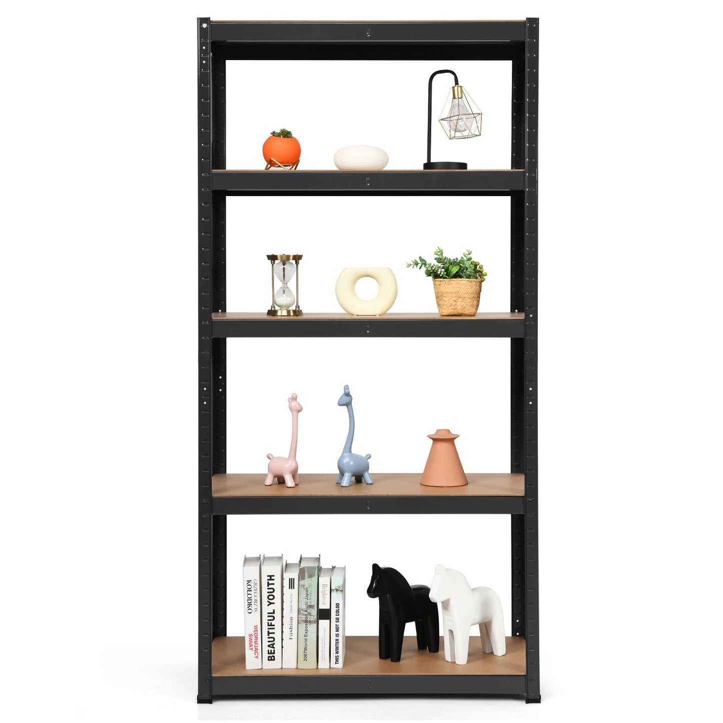 5-Tier Storage Rack with Boltless Shelving and Adjustable Shelves-Black