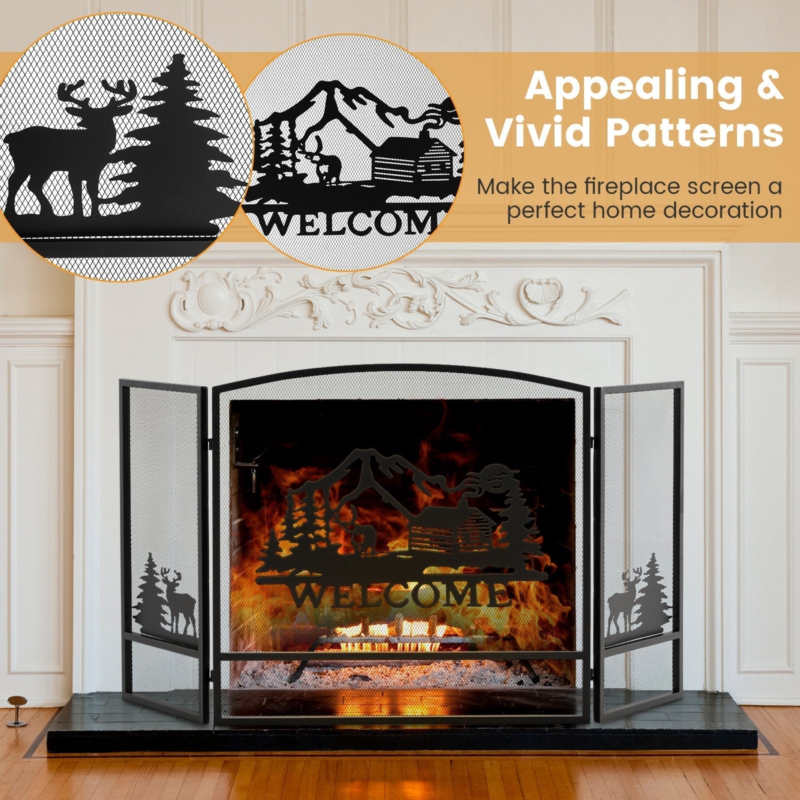 -High-density mesh protects you from ashes and sparks -Durable and rustproof metal frame for high stability -Eye-catching moose and hut patterns add a decorative touch -Flexible metal hinge firmly connects each panel -Space-saving and easy to store with foldable design -Heat resistant for long-time use near the fireplace -No need to assemble, saving time and effort