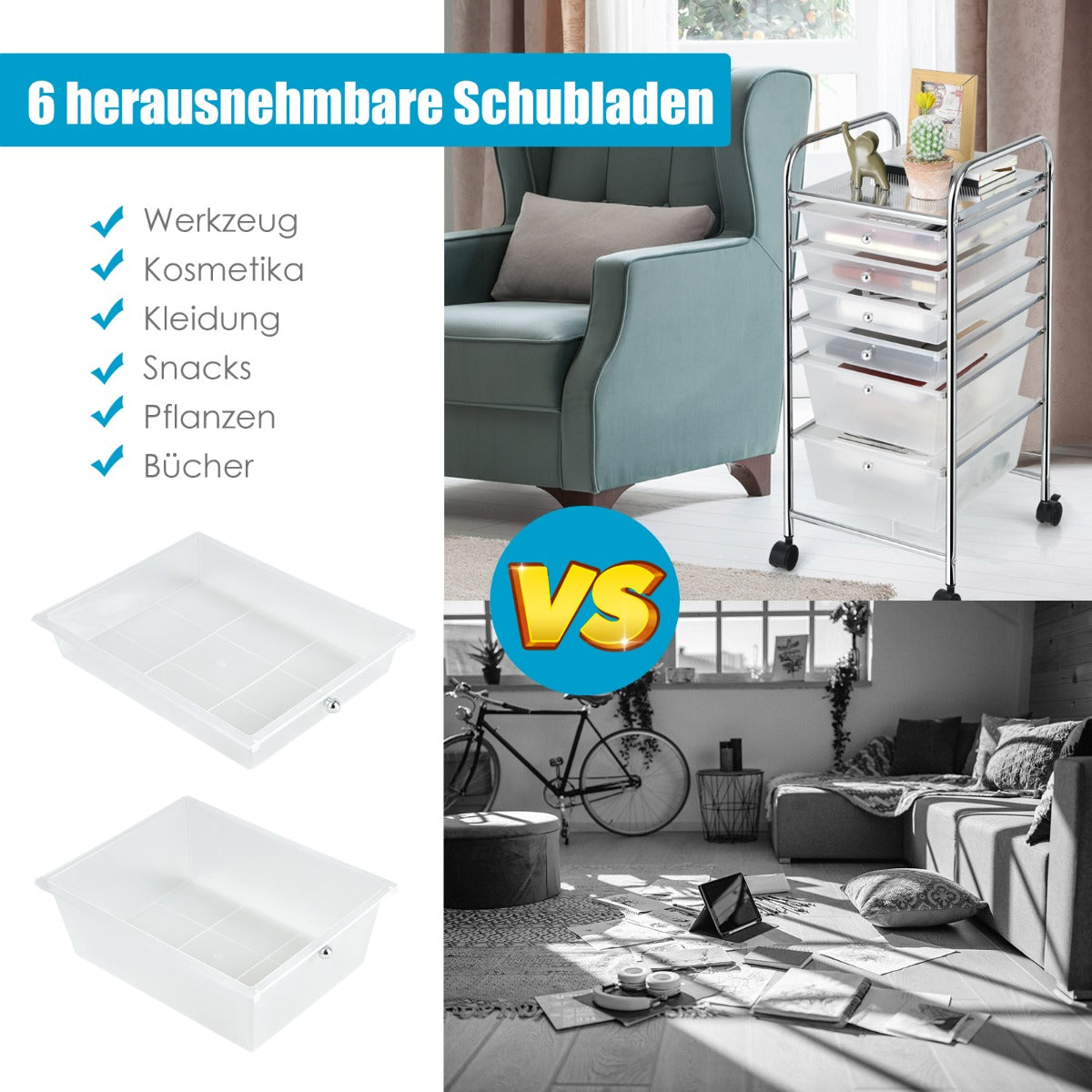 6 Drawers Rolling Storage Cart Organizer-Clear
