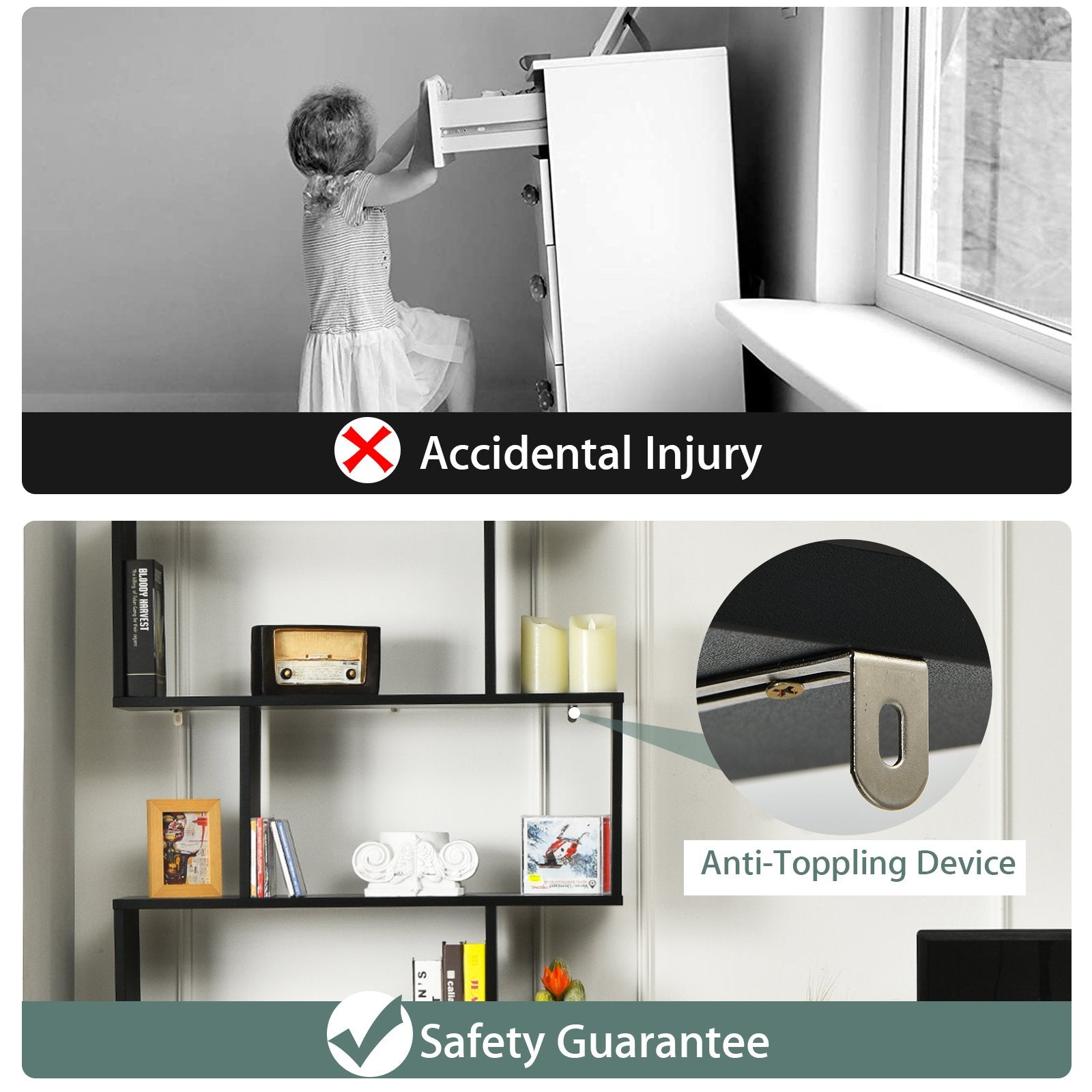 6-tier S-shaped Wooden Industrial Bookshelf-Black